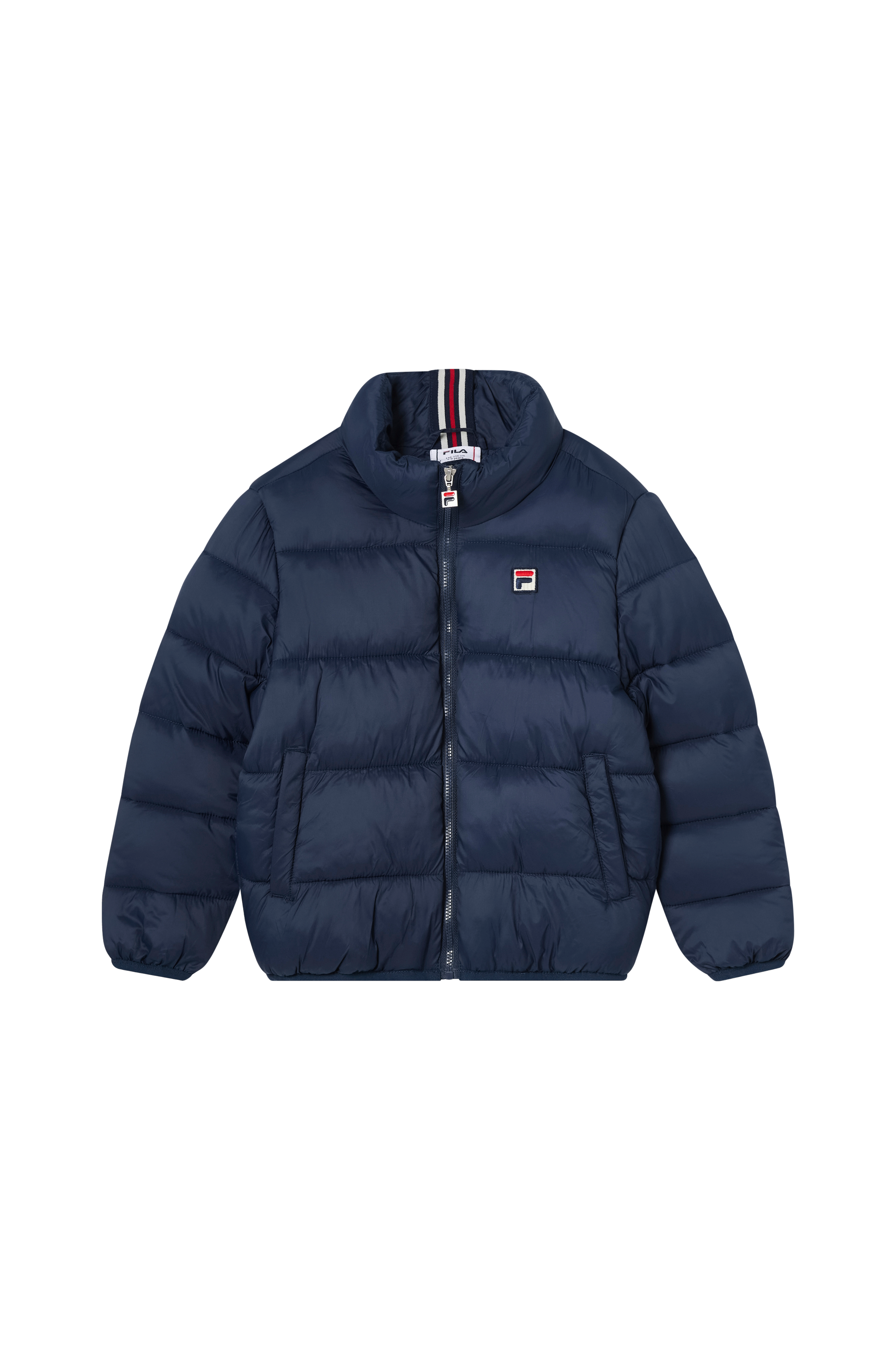 • Quiltad, vadderad jacka• Vattenavvisande material• Hög krage• Logomärke på bröstet• Dragkedjestängning• En öppen innerficka• Sidfickor• Elastiska bandkanter i ärmsluten och i nederkanten