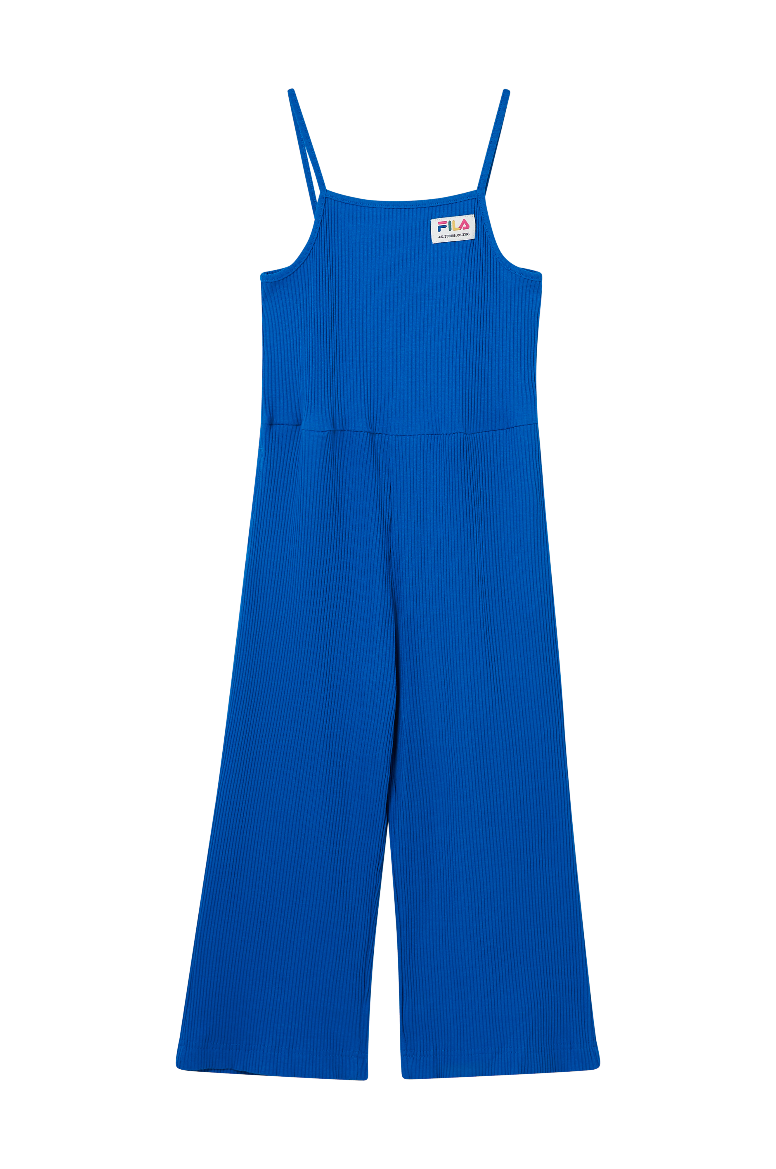 • Ribbad jumpsuit i bomullstrikå• Smala axelband• Vida ben• Fickor i sidorna