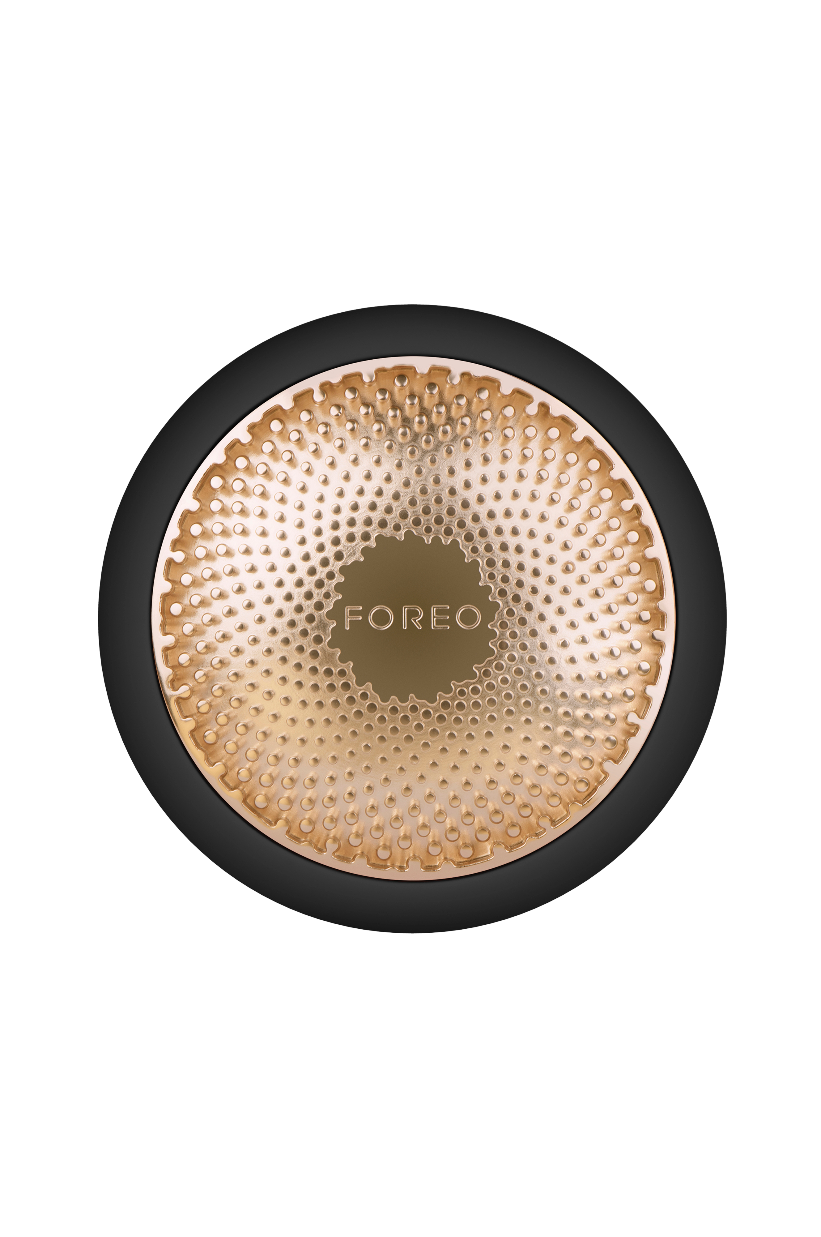 1. Ta bort ringen från din UFO™, välj en UFO™-mask och fäst den genom att applicera den på plattan och klicka tillbaka ringen på toppen med Foreo -logotypen uppåt. Alternativt kan du placera en sheet mask på ditt ansikte.