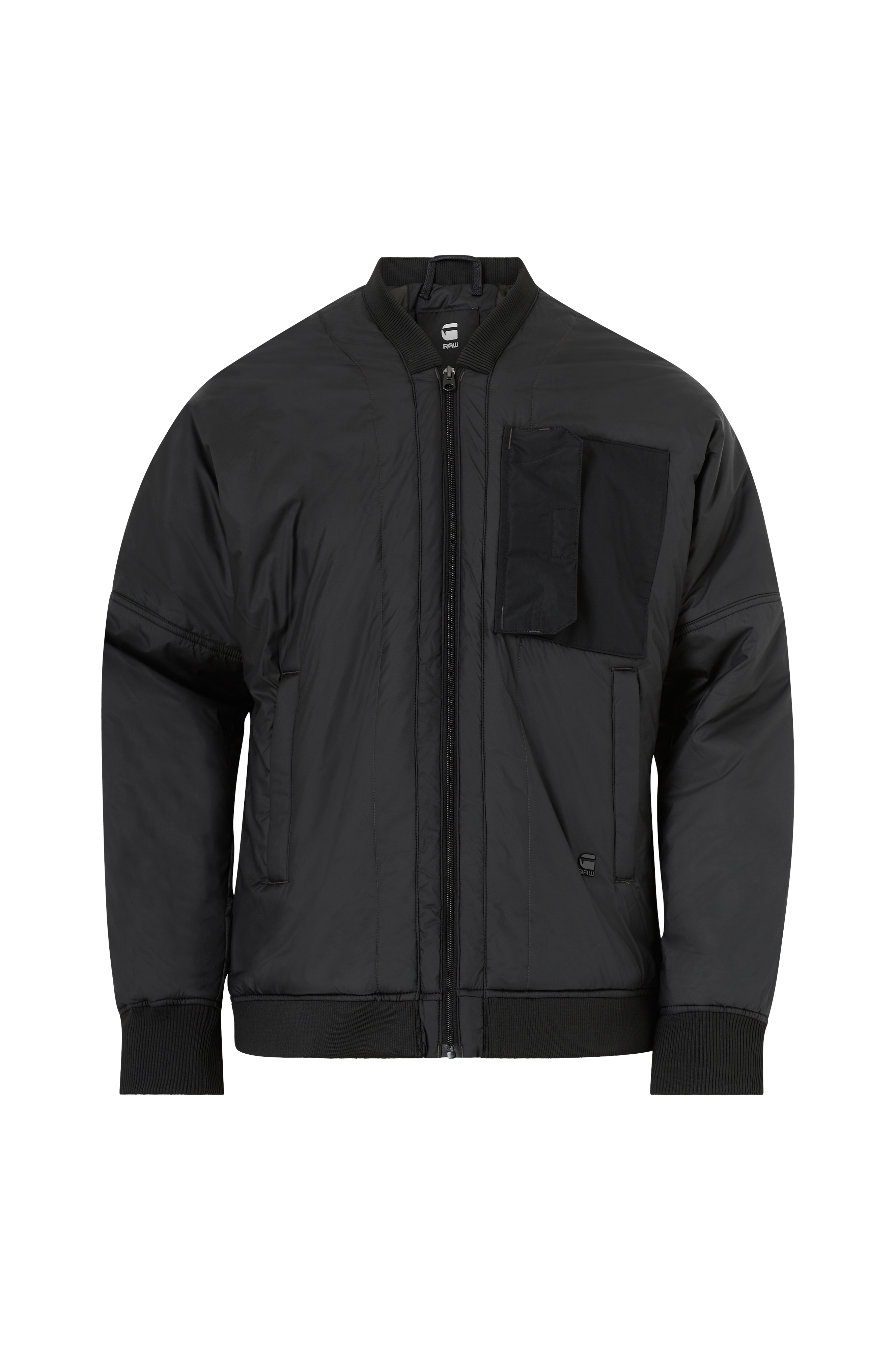 En mjuk, vadderad jacka i rak modell med nedhasade axelsömmar. Ribbad krage, dragkedja och två dragkedjefickor. En bröstficka med klaff som stängs med kardborre. En innerficka med knapp. Ribbade muddar i ärmsluten och nedtill. Längd ca 74 cm i stl M.