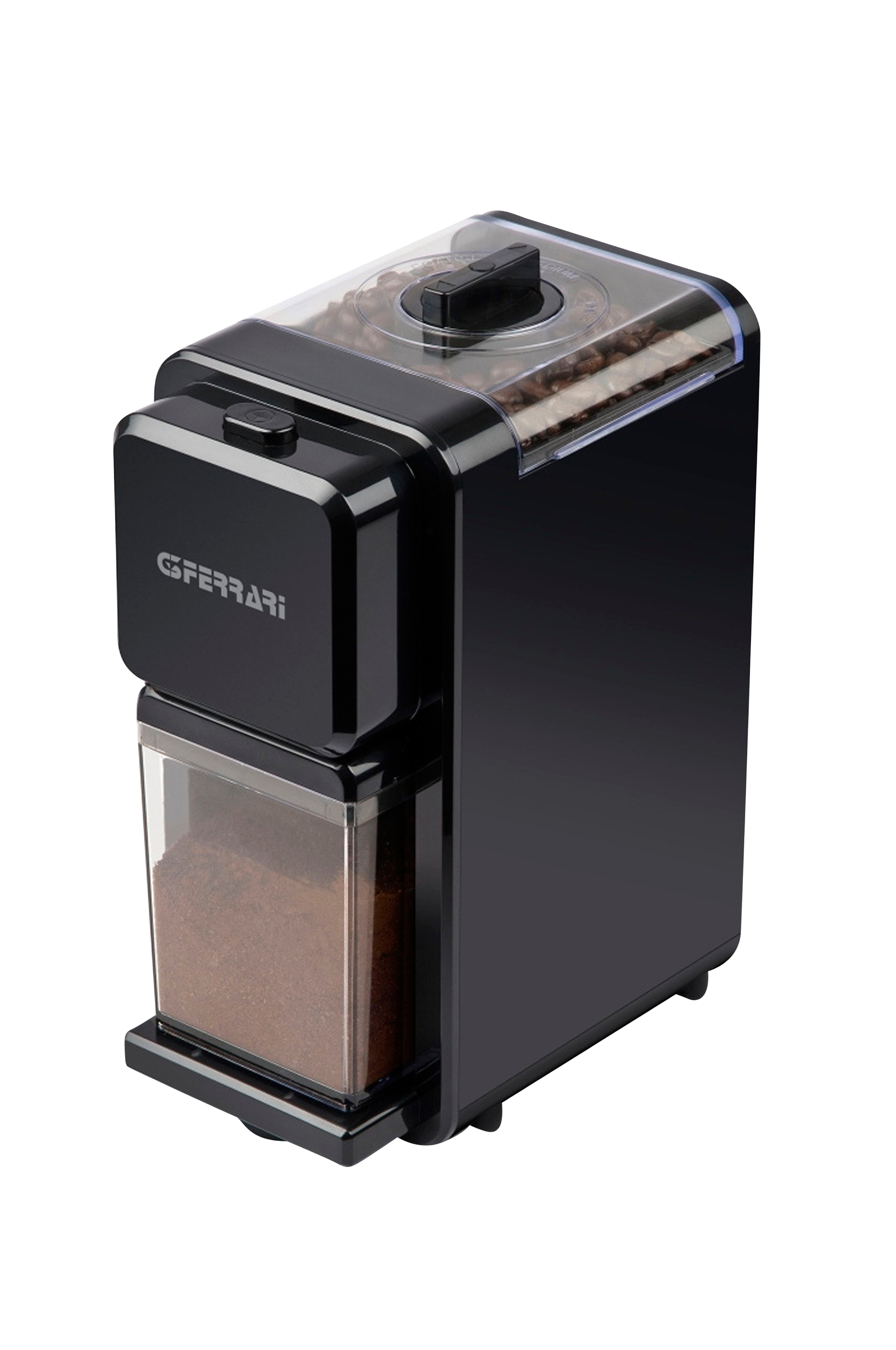 Kaffekvarn aroma si från italienska g3 ferrari, som är ett av tre varumärken som har rätt att använda namnet "ferrari". Om du gillar kaffe med en stark och distinkt aroma, kan du njuta av smaken av nymalda kaffebönor tack vare aroma si kaffekvarn. Kaffekvarnen ser till att kaffebönorna mals perfekt på några sekunder. Du kan justera hur mycket bönorna ska malas; fint, medium eller grovt. För att garantera maximal säkerhet vid användning är den utrustad med halkfria fötter och en dubbel säkerhetsanordning som blockerar kvarnarna om bönlocket eller behållaren för malet kaffe tas bort. Pow
