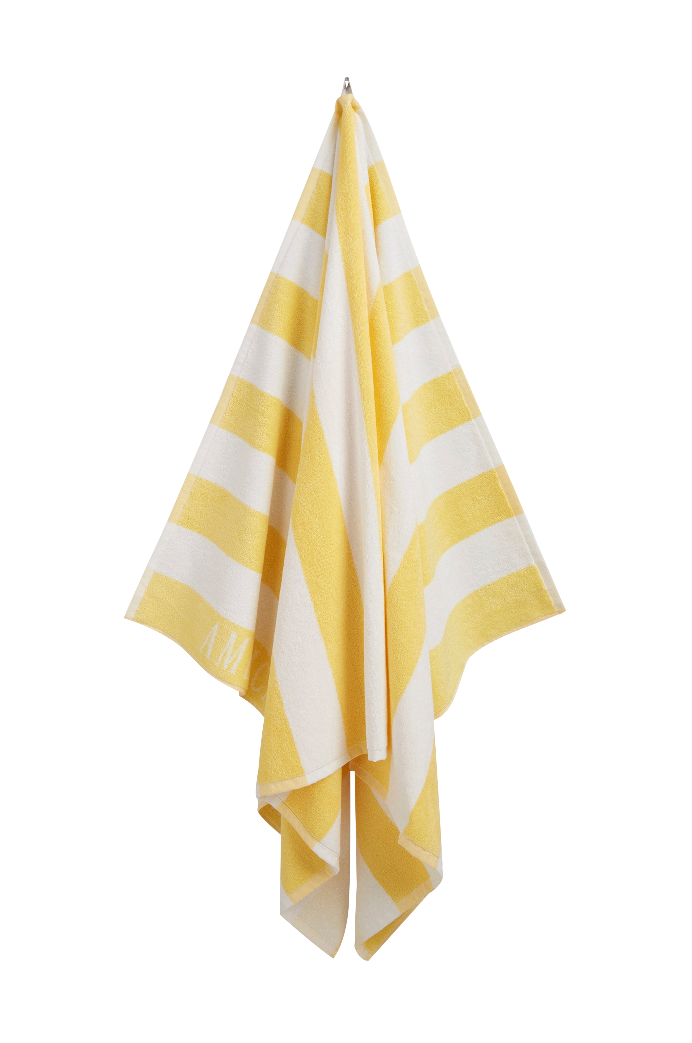 Badhandduk i ekologisk bomull, med ränder i härlig sommarfärg.