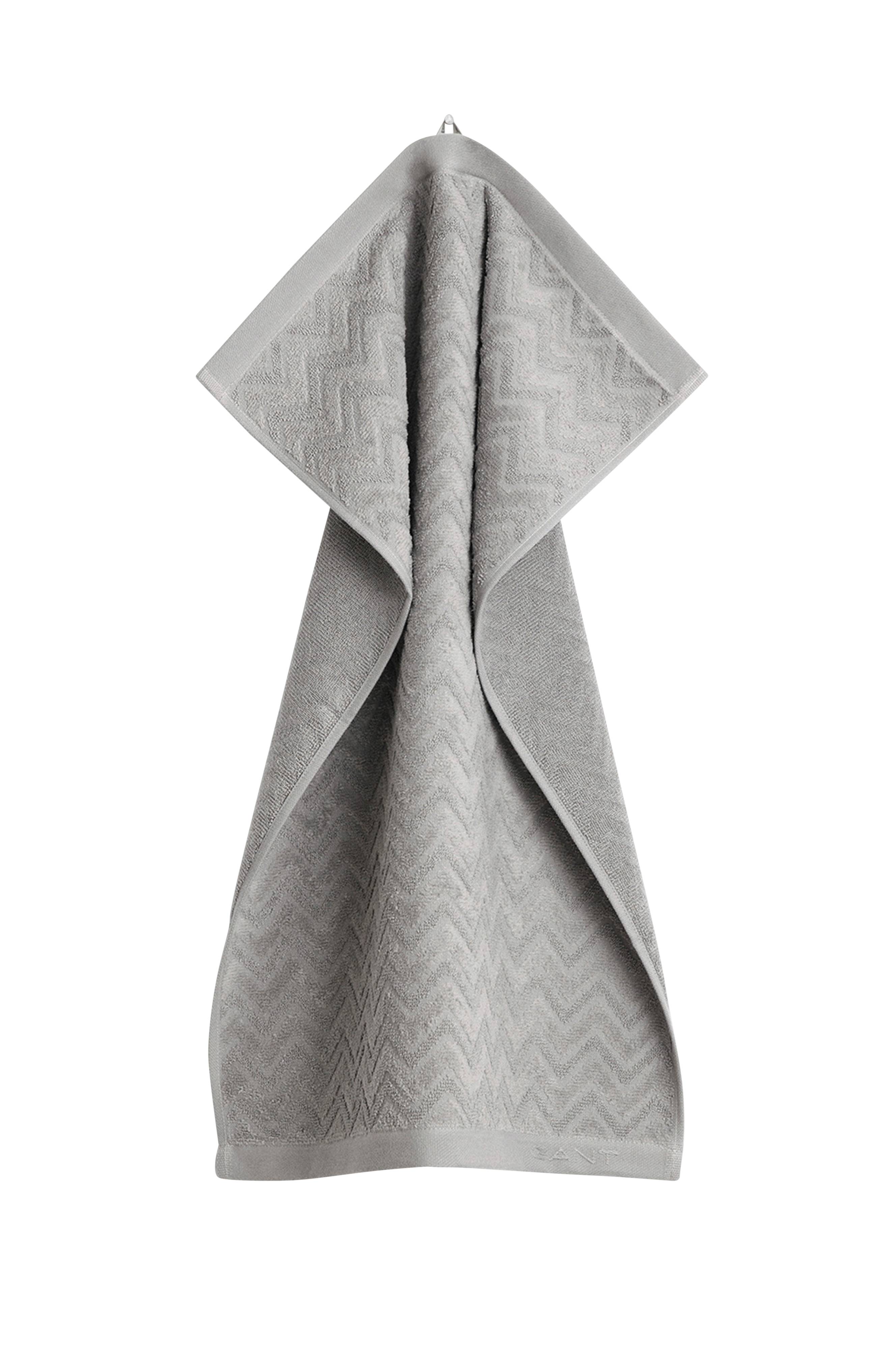 Denna handduk på 30 cm x 50 cm ger en touch av minimal elegans till alla badrum. Tillverkad av ekologisk bomull med ett mönster från jacquard herringbone . Frottéväven, med en vikt på 550 g/m2, har en innovativ växtbaserad finish som gör den extra tjock, mycket absorberande och otroligt mjuk. Den har en broderad grafik med G-bokstäver i den nedre kanten.