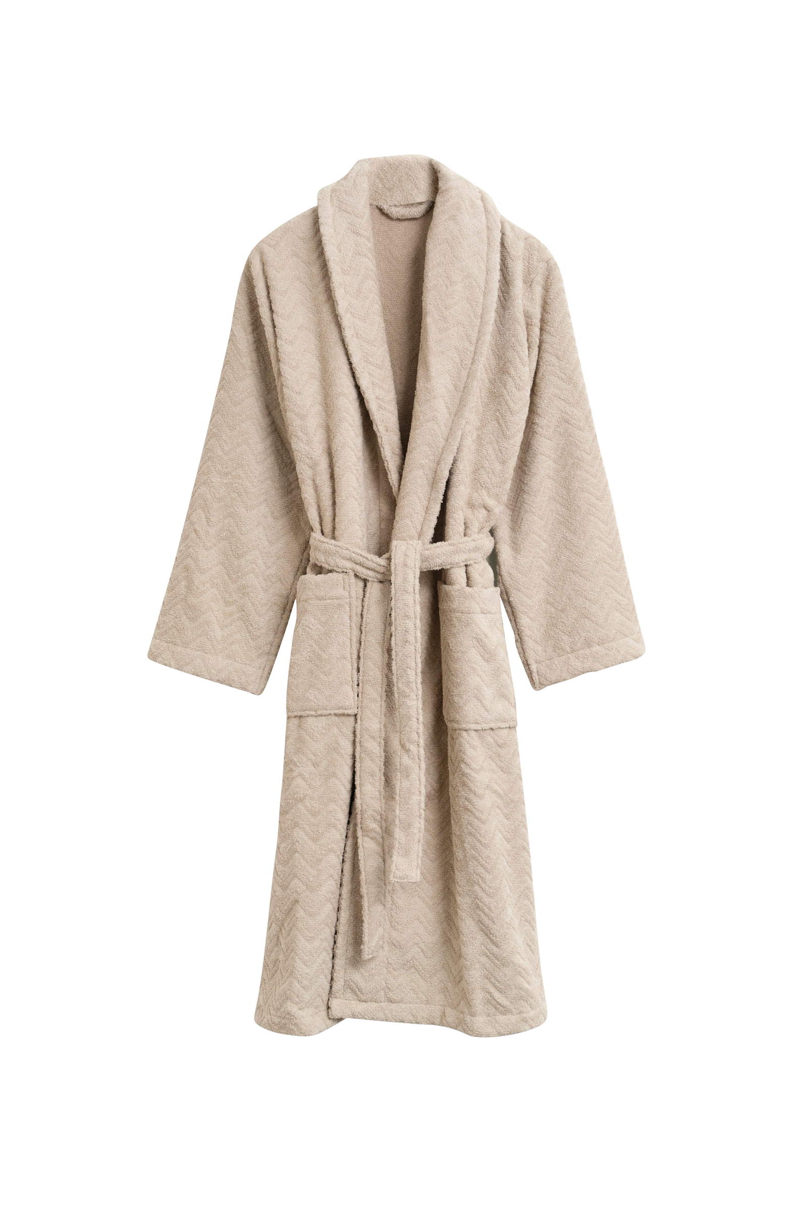 Denna morgonrock från Gant är tillverkad i en bekväm frotté av 100% ekologisk bomull. Designen är detaljerad med ett fiskbensmönstrat jacquardmönster, är skuren för en unisexpassform och har en tjock krage, midjebälte och två framfickor.