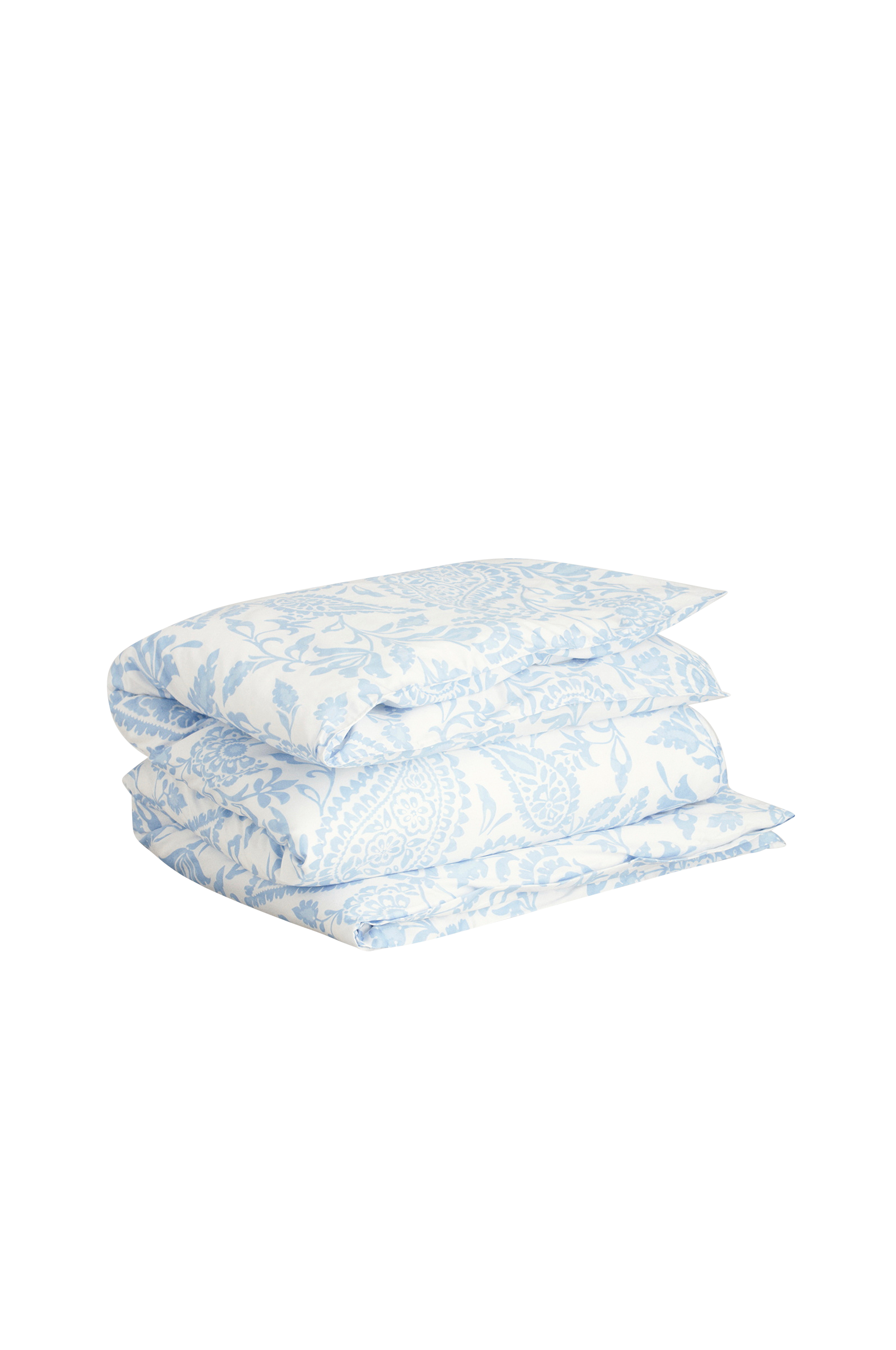 Påslakanet Paisley är tillverkat i 340-trådig sateenväv av 100 % kammad egyptisk bomull. Det är mönstrat med ett storskaligt paisleymönster på fram- och baksidan. Påslakanet har en mjuk handkänsla, handhål och en genomgående dragkedja som gör det enkelt att bädda. Örngott och täcken säljs separat.