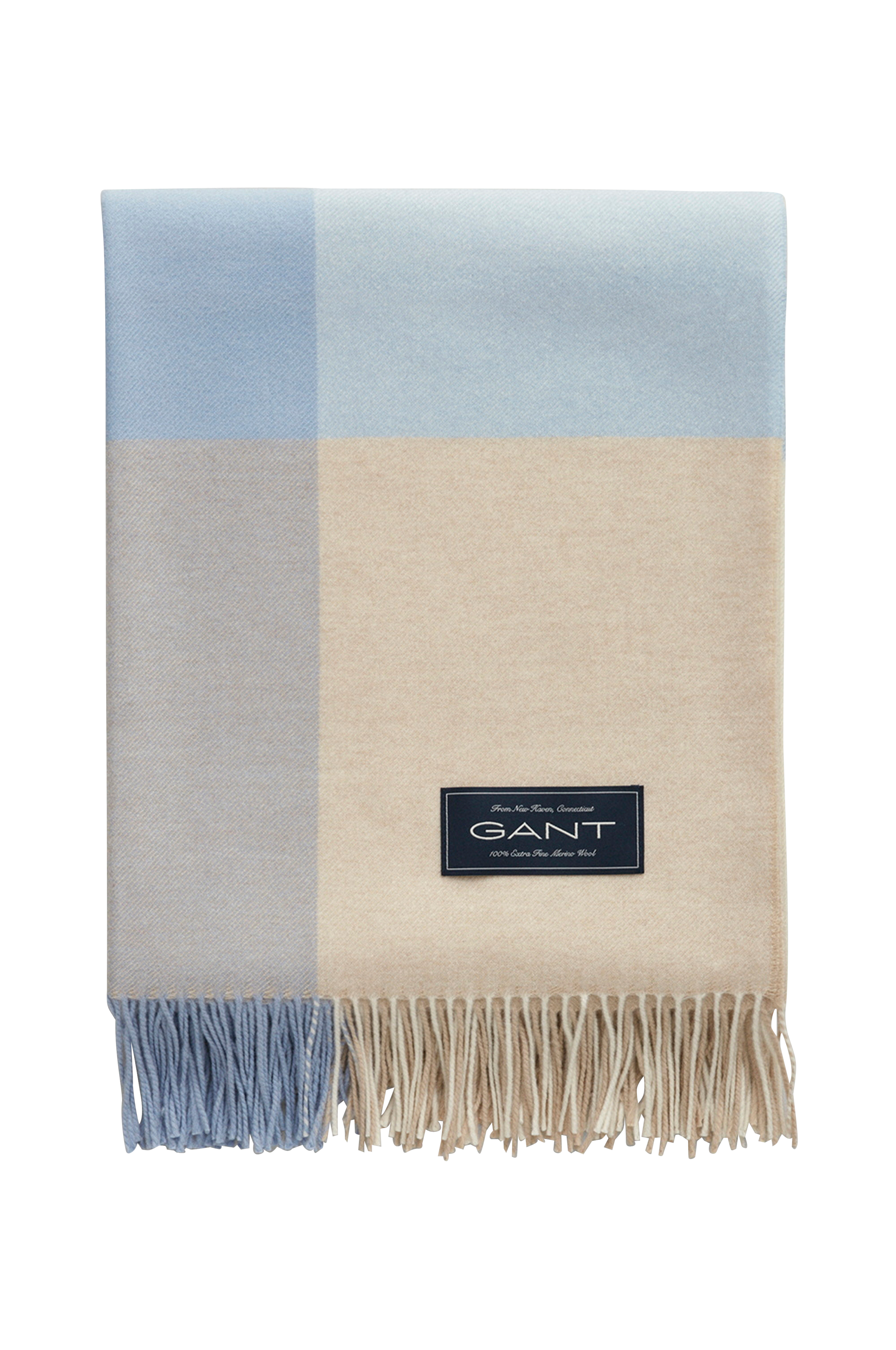 Denna pläd är tillverkad av extra fin merinoull och ger en strukturerad och mysig touch till alla rum. Den är mönstrad i rutmönster, har fransade kanter och en vävd Gant -etikett i nedre hörnet.