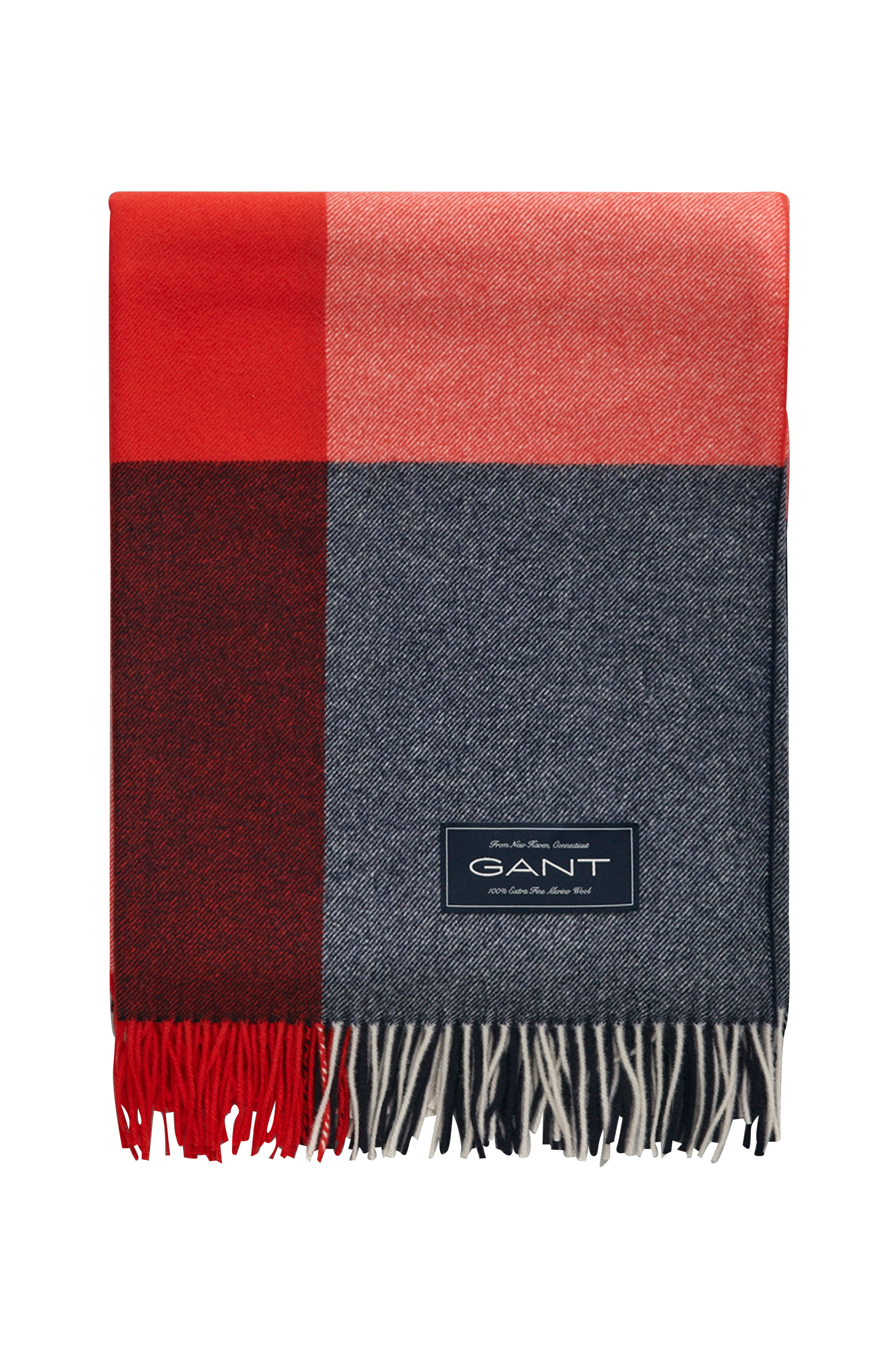 Denna pläd är tillverkad av extra fin merinoull och ger en strukturerad och mysig touch till alla rum. Den är mönstrad i rutmönster, har fransade kanter och en vävd Gant -etikett i nedre hörnet.