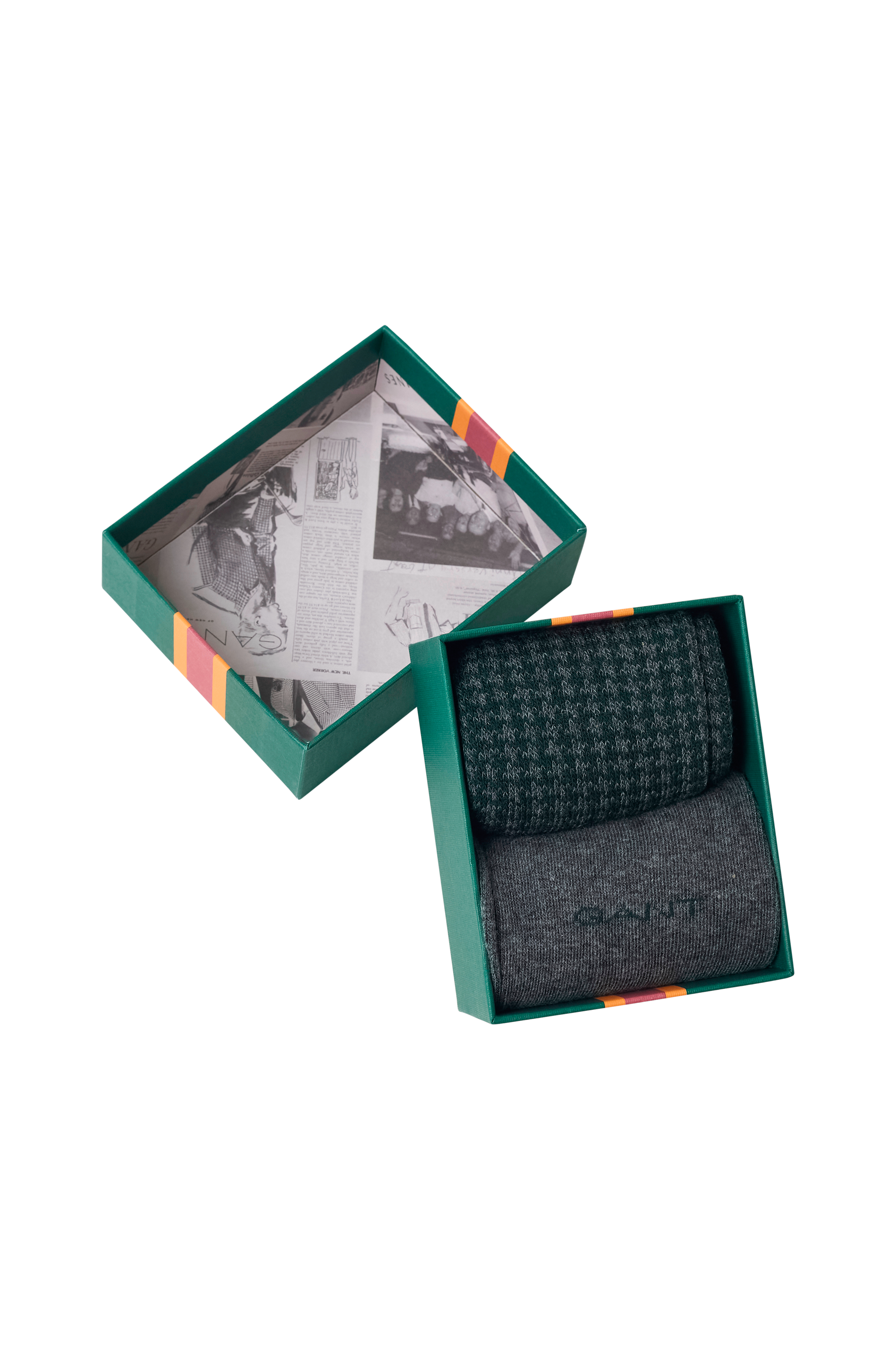 Ett par presentförpackade strumpor i mjuk kammad bomull som når till mitten av vaden. Förpackningen innehåller ett enfärgat par och ett par med houndstooth-mönster.
