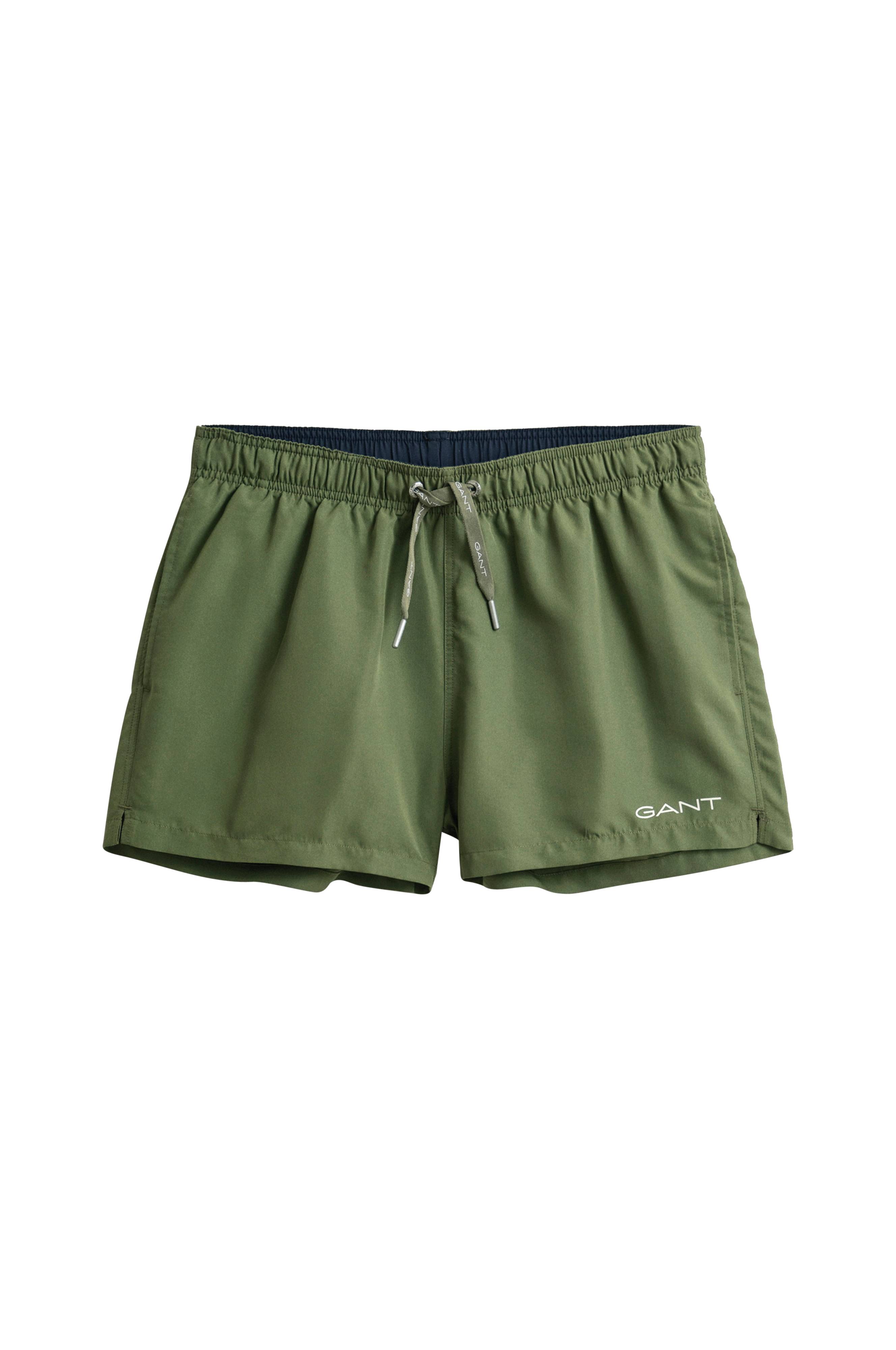 Dessa swim shorts är designade av Gant och tillverkade av quick-torkande polyester med en mjuk, peachad handkänsla. De är skurna för en normal passform med en längd mitt på låret och har ett bekvämt elastiskt midjeband med en justerbar dragsko. Andra detaljer är sidosömfickor och en enkel ficka baktill. En Gant logo accentuerar benet och ger en signatur touch till denna säsongsbetonade stapelvara.