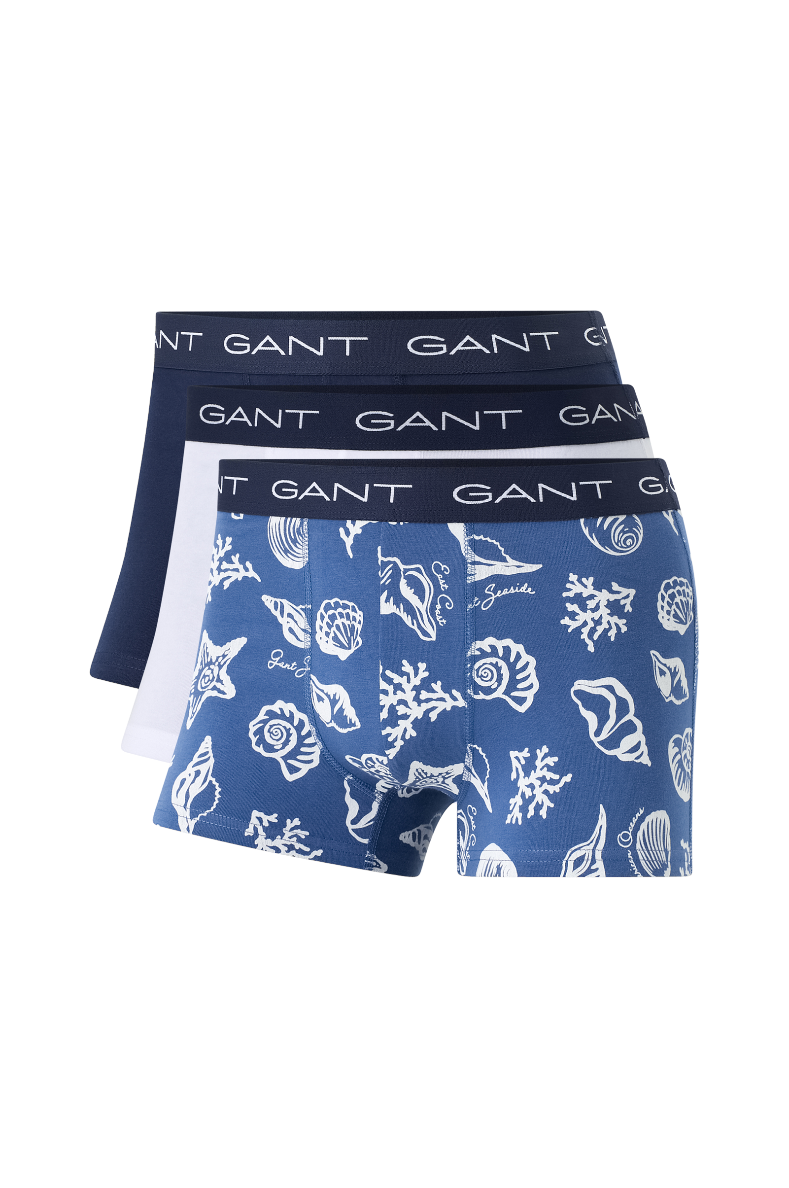 Gants underkläder ger stödjande, bekväma passformer i högkvalitativa tyger. Dessa kalsonger i bomullsjersey från Gant kommer i en 3-pack, med två blandade enfärgade par och ett med en shell print . De har en smal passform, normal midja och kort benlängd. Varje trunk har ett jacquardstickat elastiskt midjeband med upprepade Gant-logotyper.