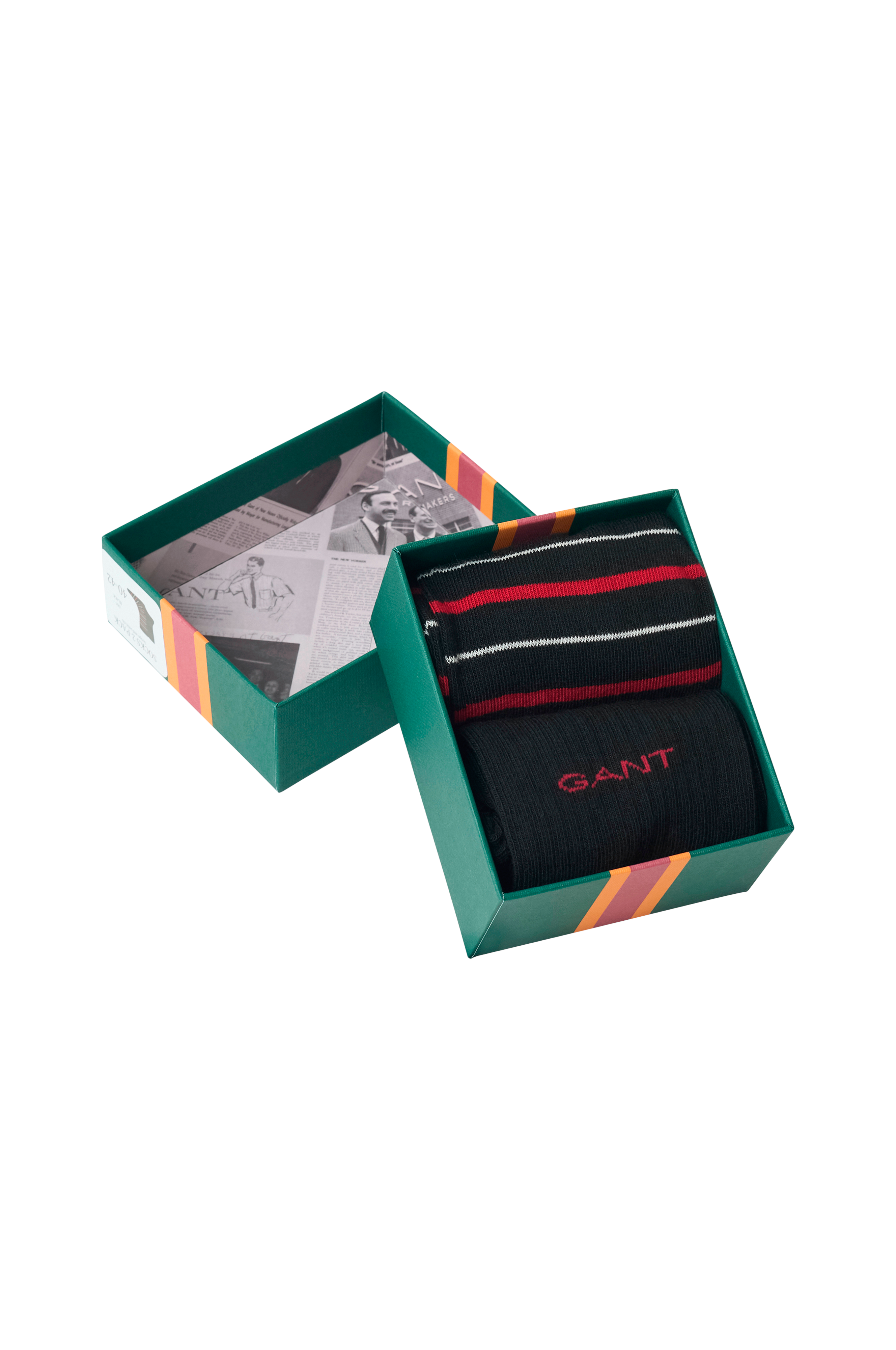Denna 2-pack från socks presenteras i en gift box och är tillverkad av mjuk kammad bomull och har en passform som är mitt på vaden. Setet innehåller ett enfärgat, ribbat par och ett med randigt mönster. Båda paren är försedda med en intarsia Gant-logotyp, placerad antingen vid ankeln eller fotbädden för en subtil märkesdetalj.
