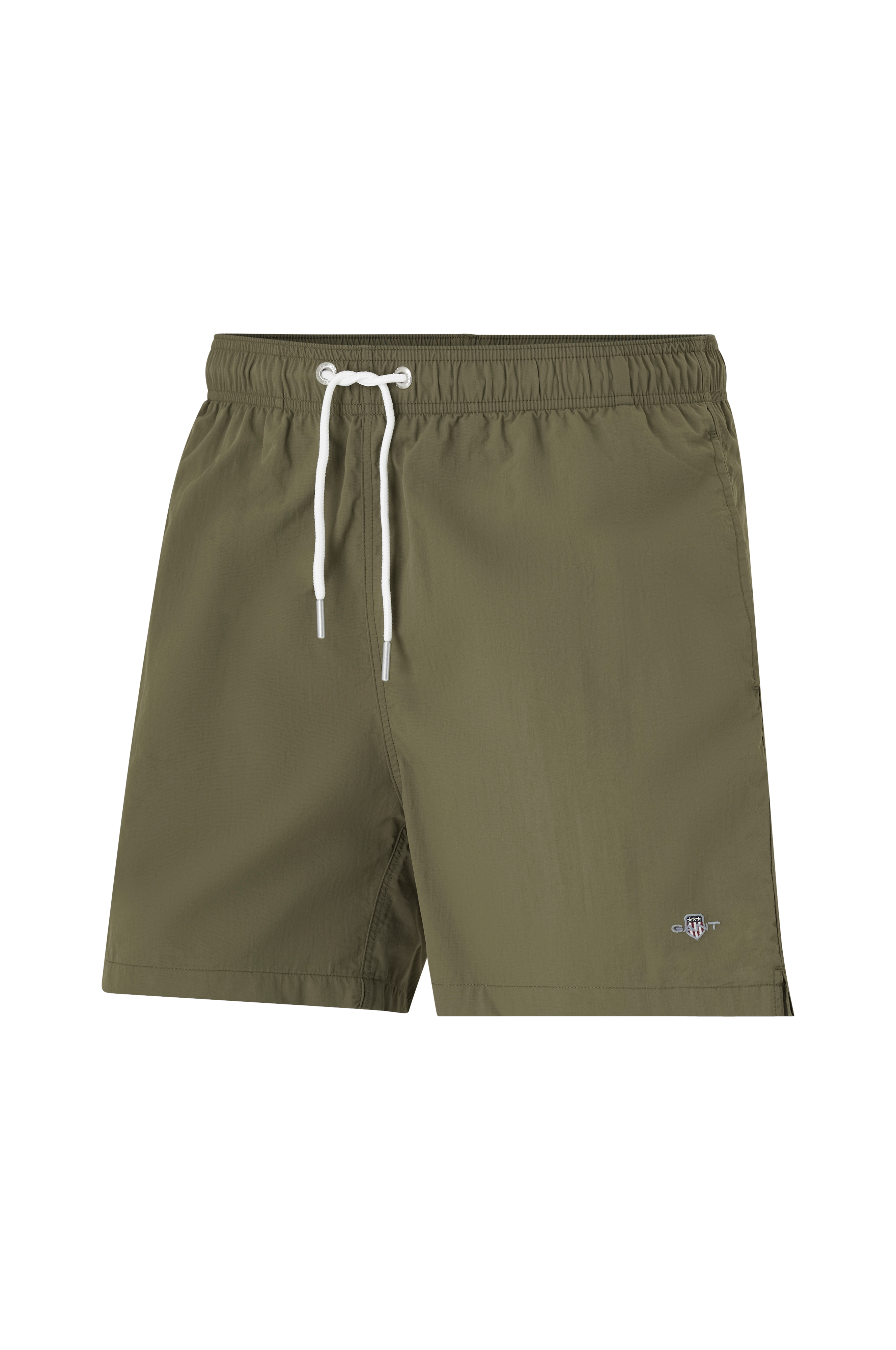 Dessa klassiska swim shorts är tillverkade av 100% återvunnen polyamid. De är tillverkade för en normal passform, har en medellång skärning och en normal midja, med ett elastiskt midjeband med en kontrastfärgad dragsko. Dessa shorts är utrustade med sidofickor, en enkel bakficka och vår ikoniska Shield-logotyp broderad på benet.