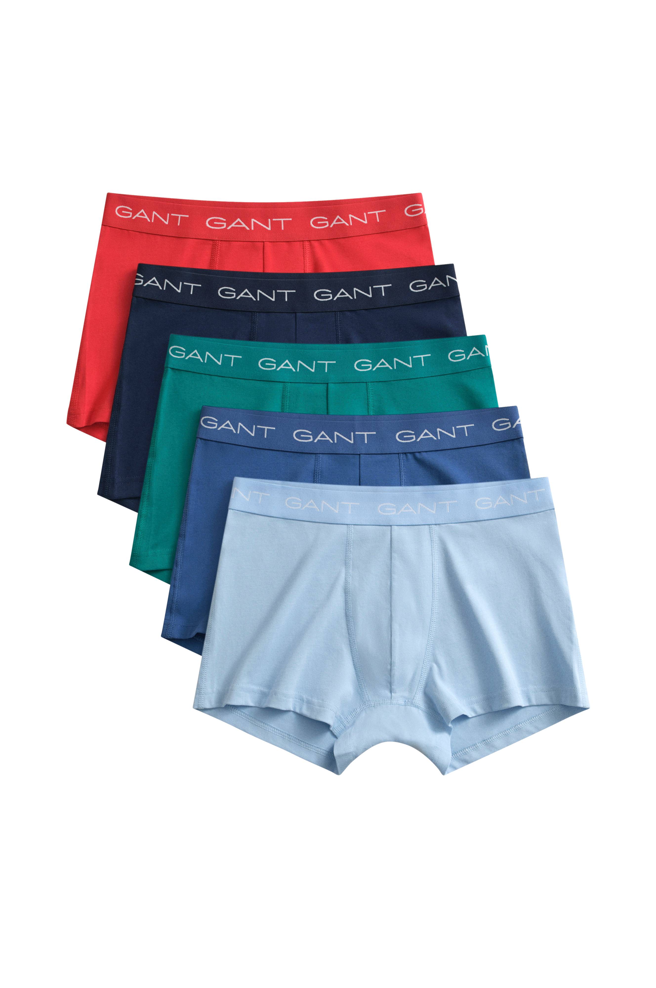 Gants underkläder ger stödjande, bekväma passformer i högkvalitativa tyger. Dessa kalsonger i bomullsjersey från Gant kommer i en 5-pack av klassiska, enfärgade färger. De har en smal passform, normal midja och kort benlängd. Varje trunk har ett jacquardstickat elastiskt midjeband med upprepade Gant-logotyper.