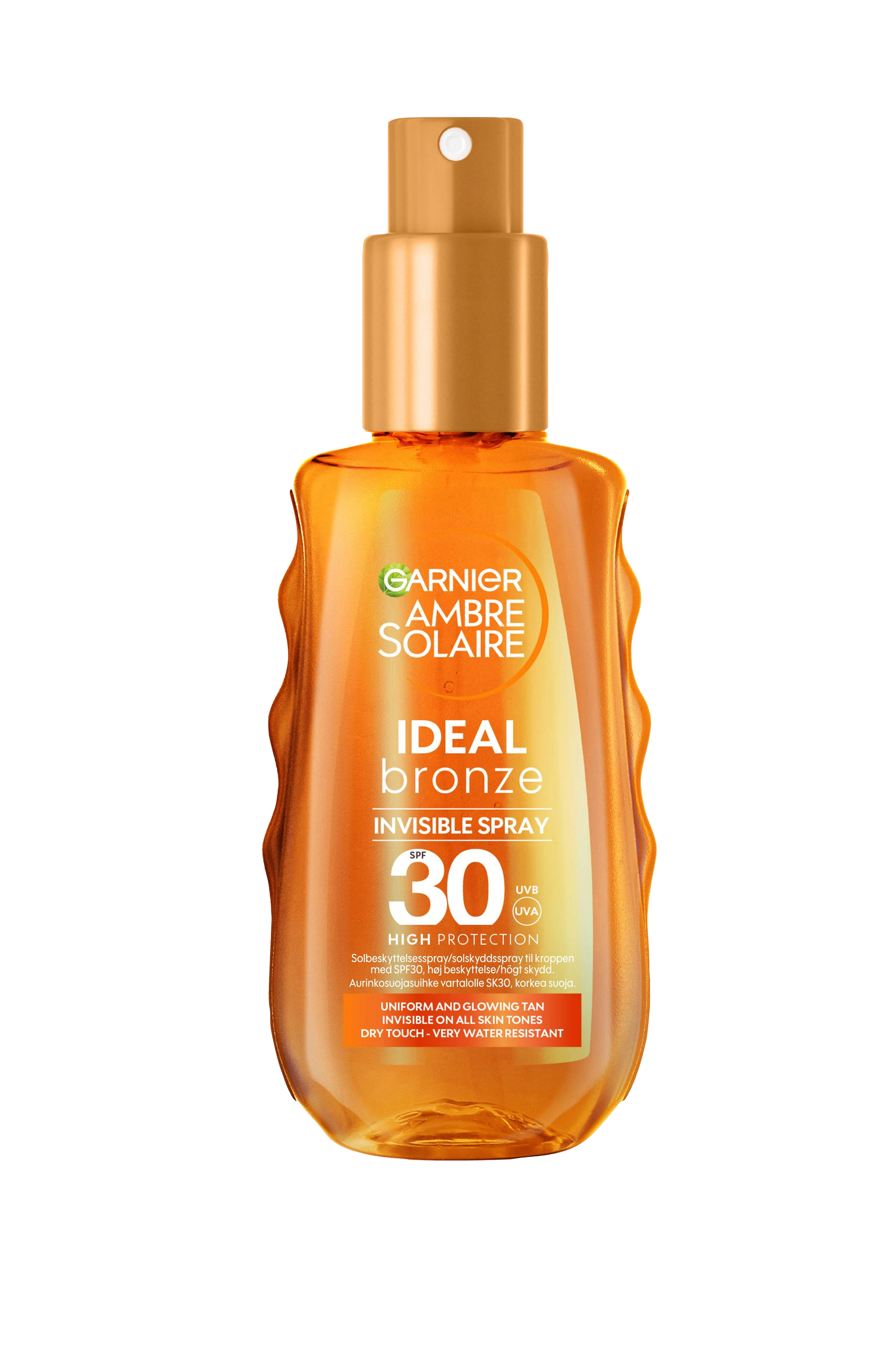 Garnier Ambre Solaire Ideal Bronze Invisible Spray SPF30 solskyddssprej för kroppen ger din hud jämn färg och vacker lyster. Skyddar huden mot UVA, UVB och långa UVA-strålar.