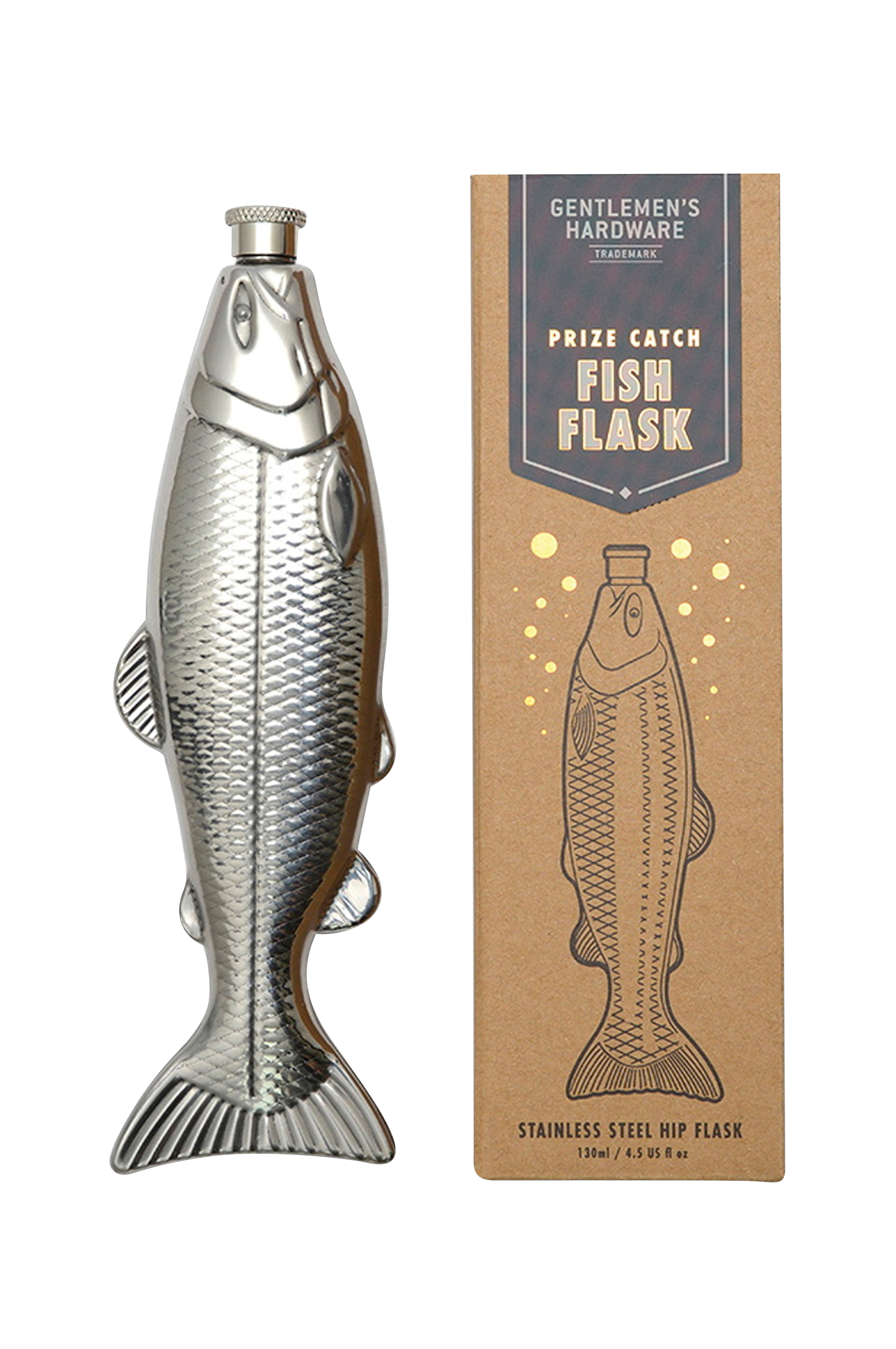 Inget mer fiske efter komplimanger med den här flaskan! Håll din favoritdryck nära till hands med den här roliga fiskformade pluntan.