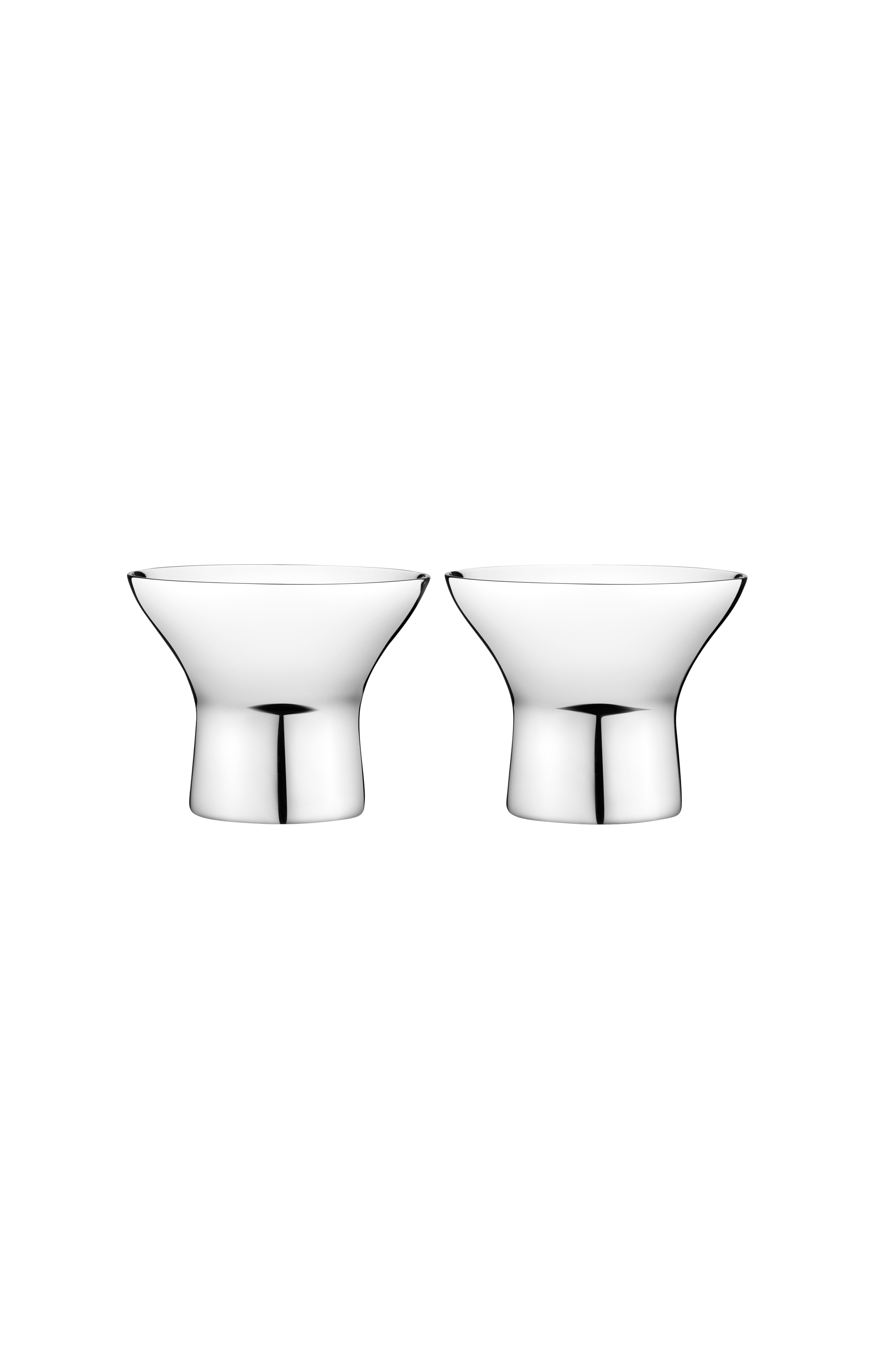 Set med två skulpturala äggkoppar i rostfritt stål. Perfekt balanserande form och funktion. Designern Alfredo Häberli är starkt influerad av kreativiteten och passionen i sitt hemland Argentina och lägger alltid till ett inslag av humor till sitt arbete. Hans Alfredo-serie var tänkt som en grupp föremål som relaterar till varandra - ungefär som en familj - men som också fungerar självständigt. Resultaten har universell dragningskraft. Setet med två äggkoppar är tillverkade av spegelpolerat rostfritt stål.