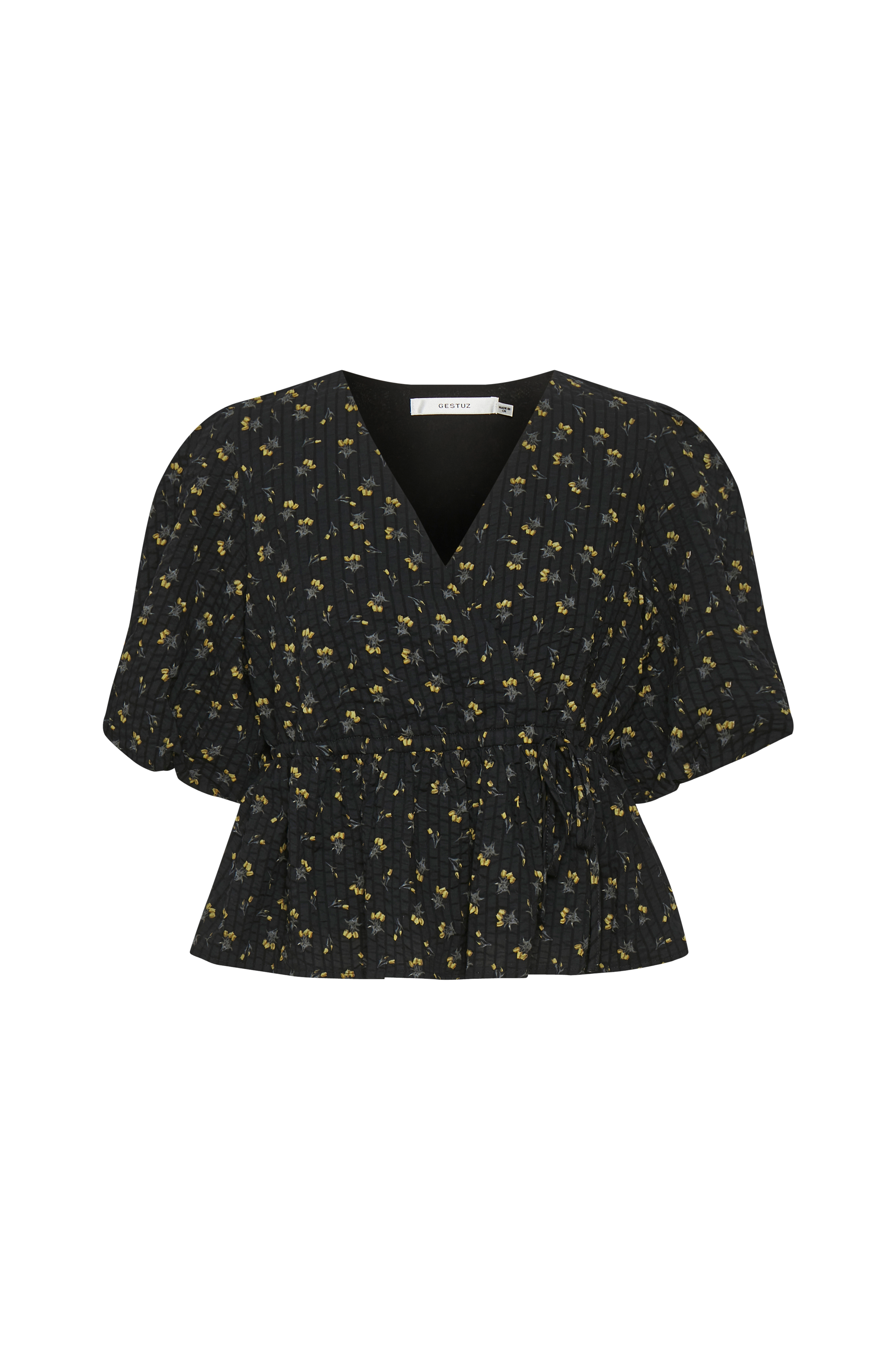 Blus med v-ringning i omlott och justerbar midja med dragsko. Korta ballongärmar med rynkad axelsöm och elastiskt ärmslut. Gjord i vävd kvalitet med våffelstruktur. Tunt fodrad.