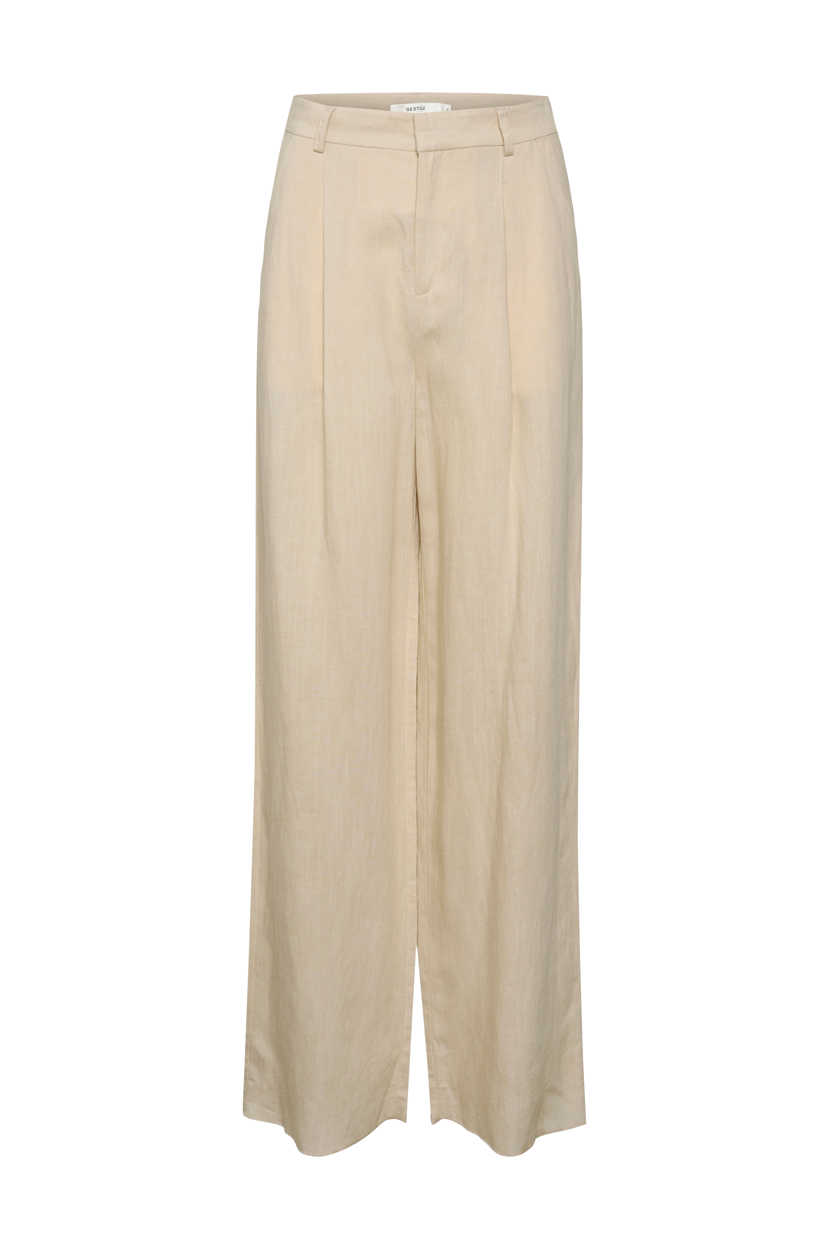 • Vida byxor i linnemix • Sidfickor • Fuskfickor bak • Stängning med dragkedja, hake och knapp • Plagget innehåller lyocell som är ett förnyelsebart material och där tillverkningsprocessen sker i ett slutet system där alla resurser återvinns och återanvänds igen. Den har lägre miljöpåverkan och kräver mindre mängd vatten än bomull.