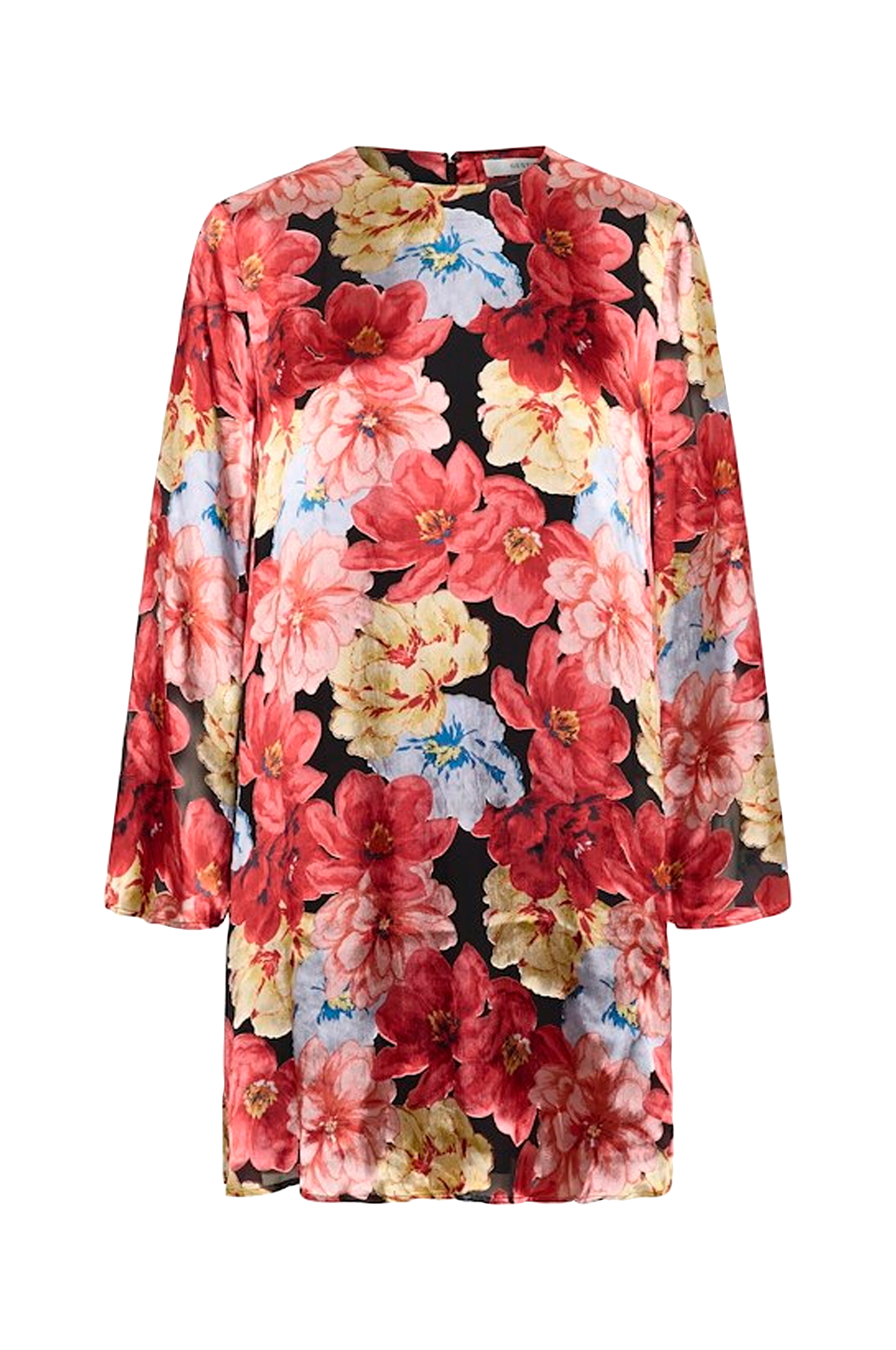 • Fodrad klänning med långa trumpetärmar• Rak, vid modell i satin• Rund halsringning• Dragkedjestängning i nacken• Längd: 93 cm i storlek 42