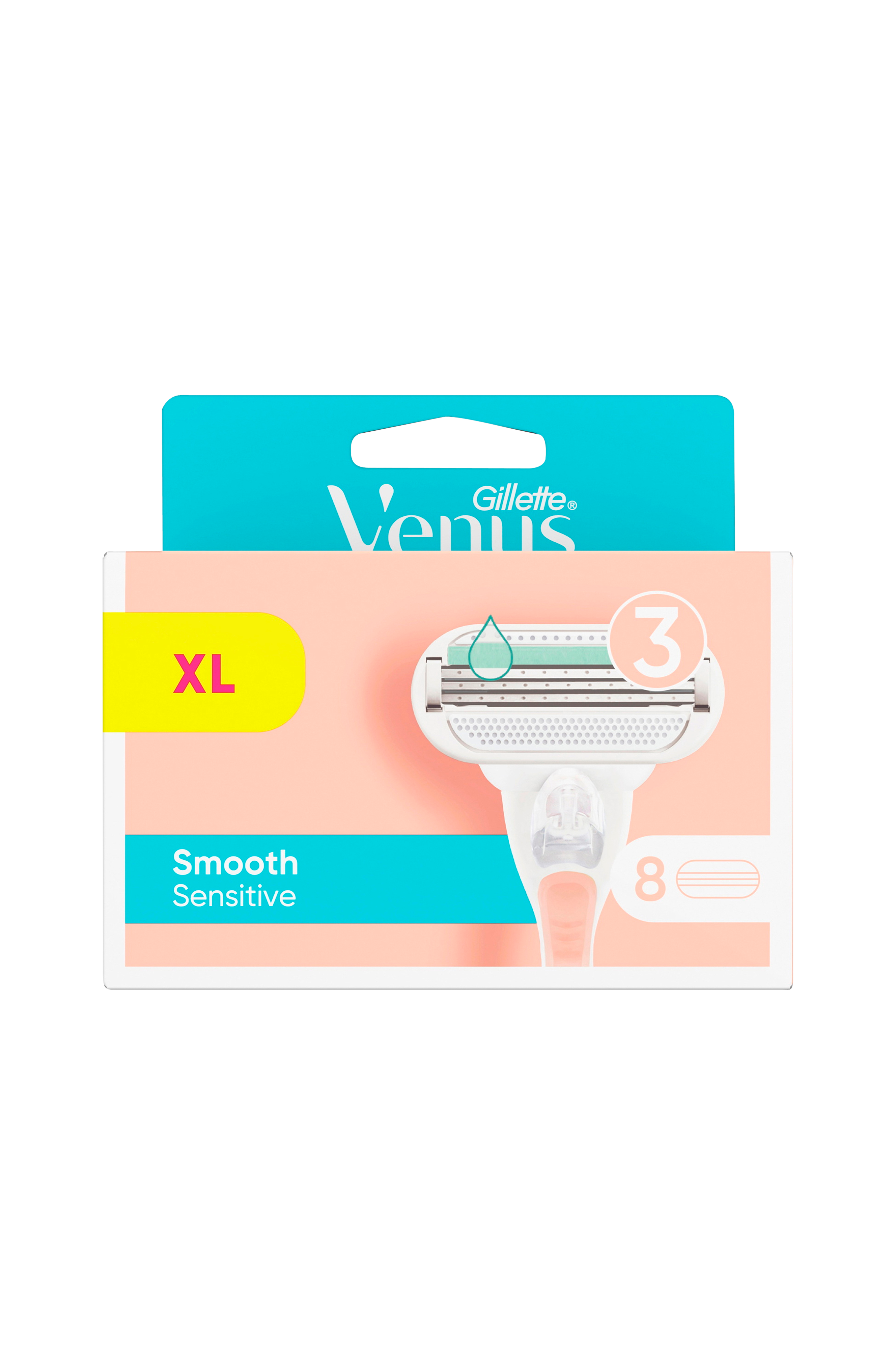 Venus Smooth Sensitive-rakhyvlar är utformade för kvinnor med känslig hud. Dessa rakbladsrefiller har 3 konturanpassade blad för en rakning med 0 % irritation som rakar håren närmare huden, för en rakning som håller huden skyddad.
