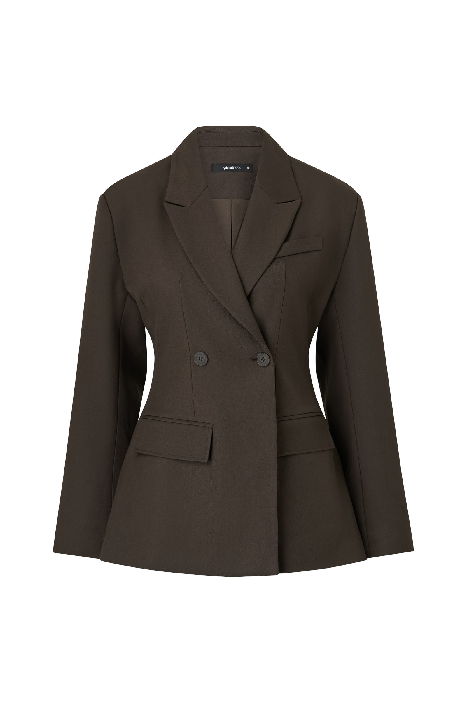 • Blazer med krage och slag• Axelvaddar• Dubbelknäppning• Textilfoder• Två passpoalfickor med lock• Dekorativa knappar i ärmsluten• Längd: 72 cm i storlek S