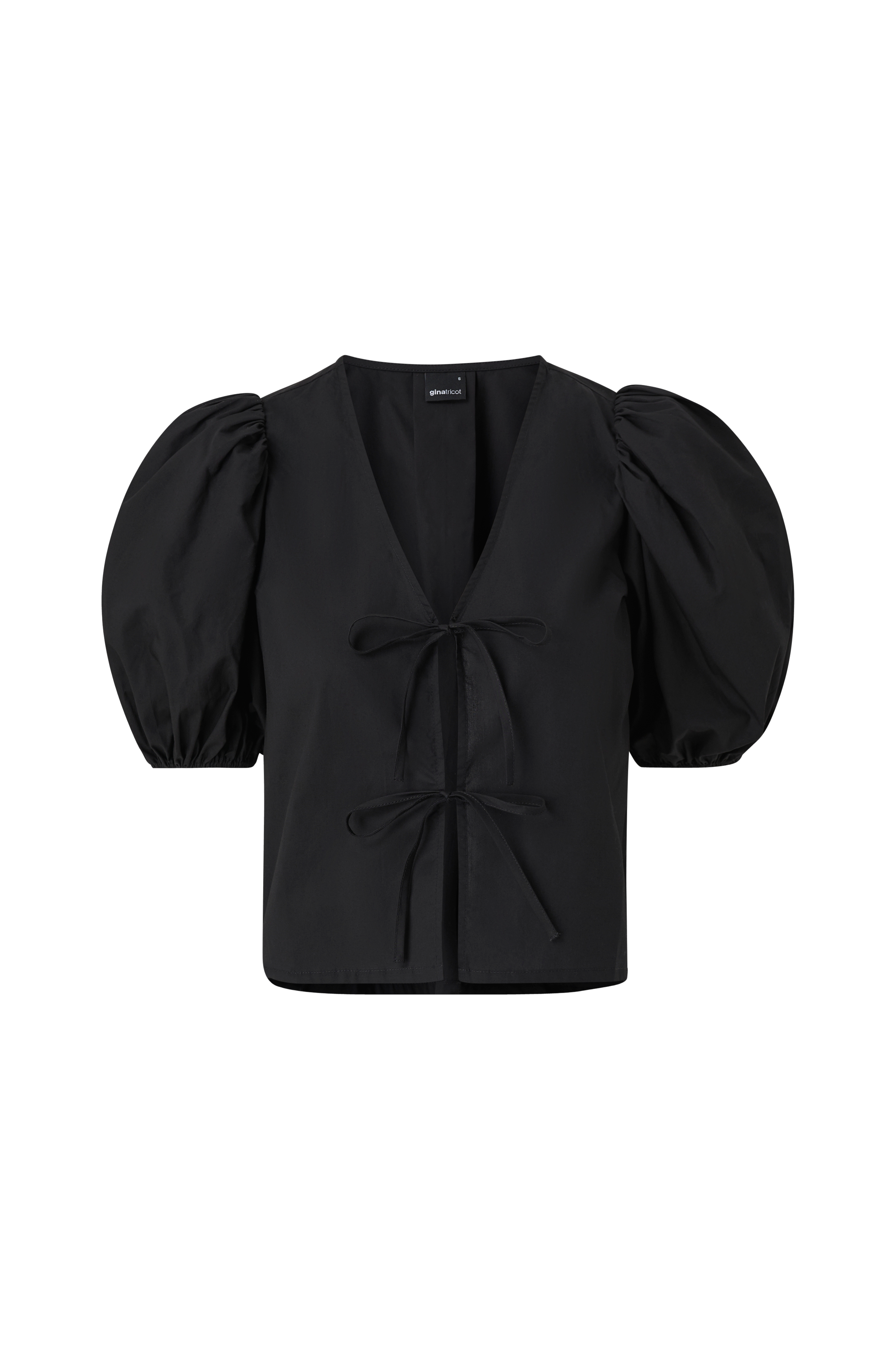 • Öppen framsida med knytband• Korta puffärmar• Tygveck i ryggen