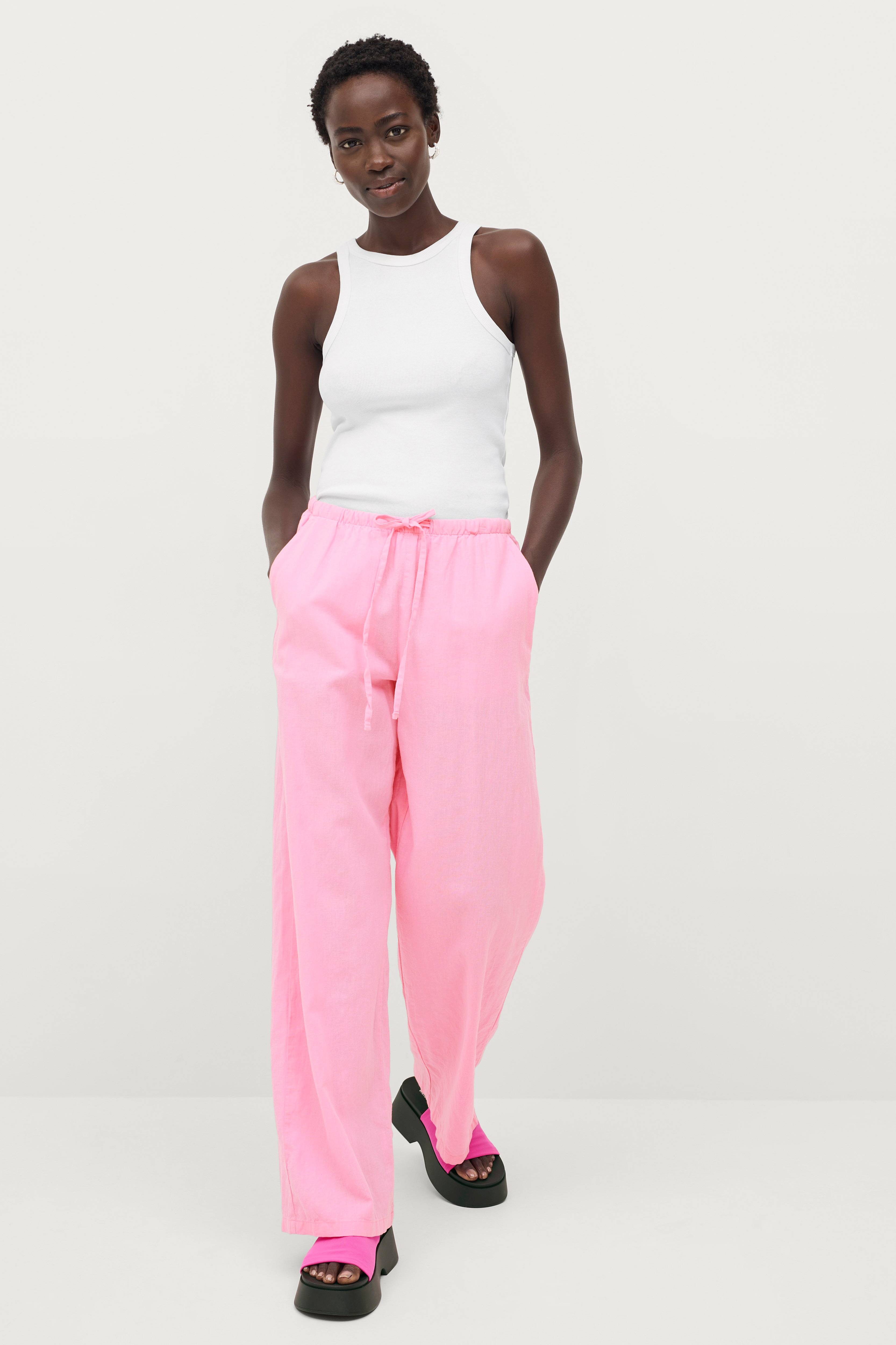 • Byxor i linnemix• Medelhög, elastisk midja med dragsko• Vida ben• Sidfickor