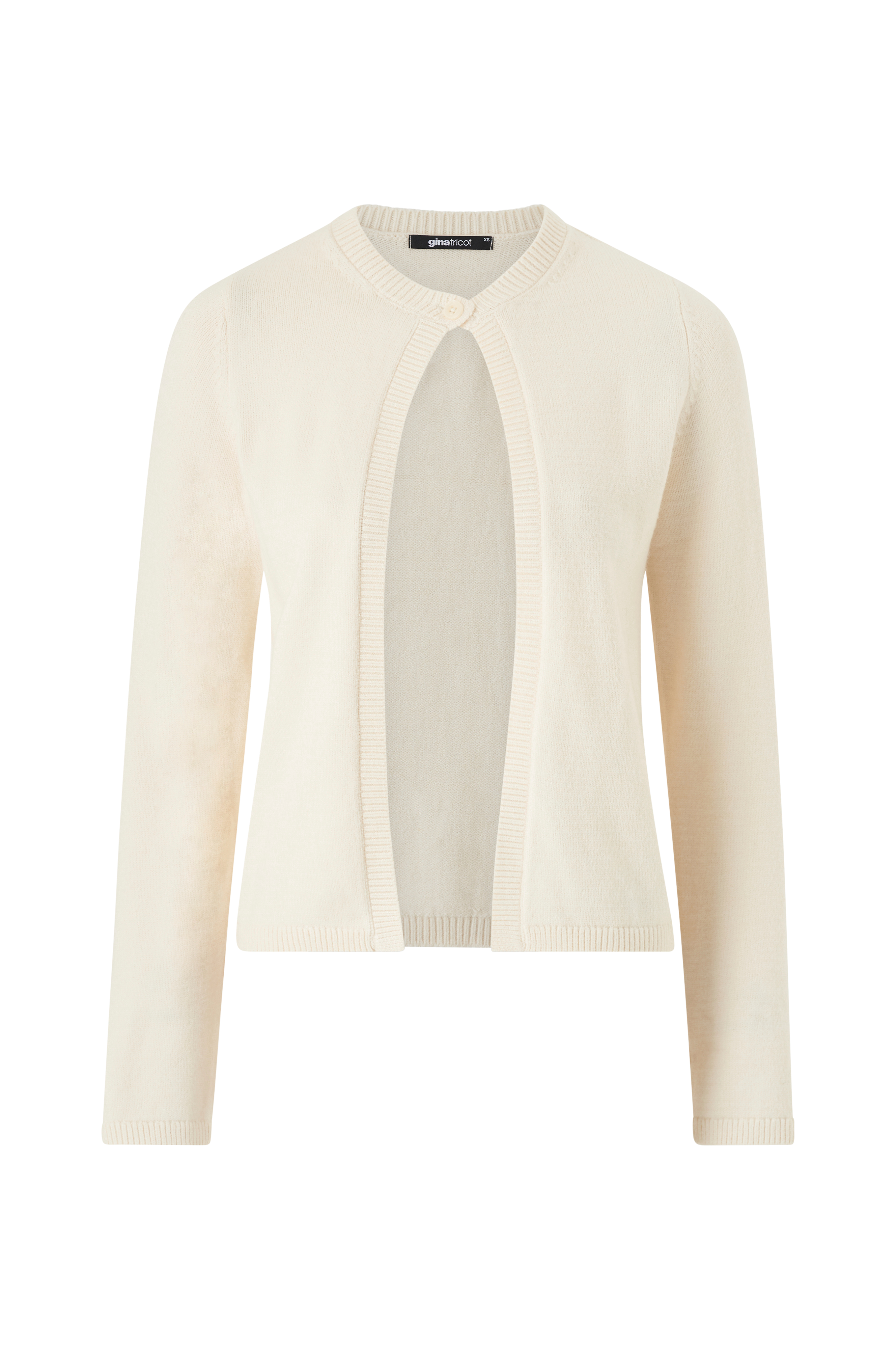 • Stickad cardigan med en knapp upptill