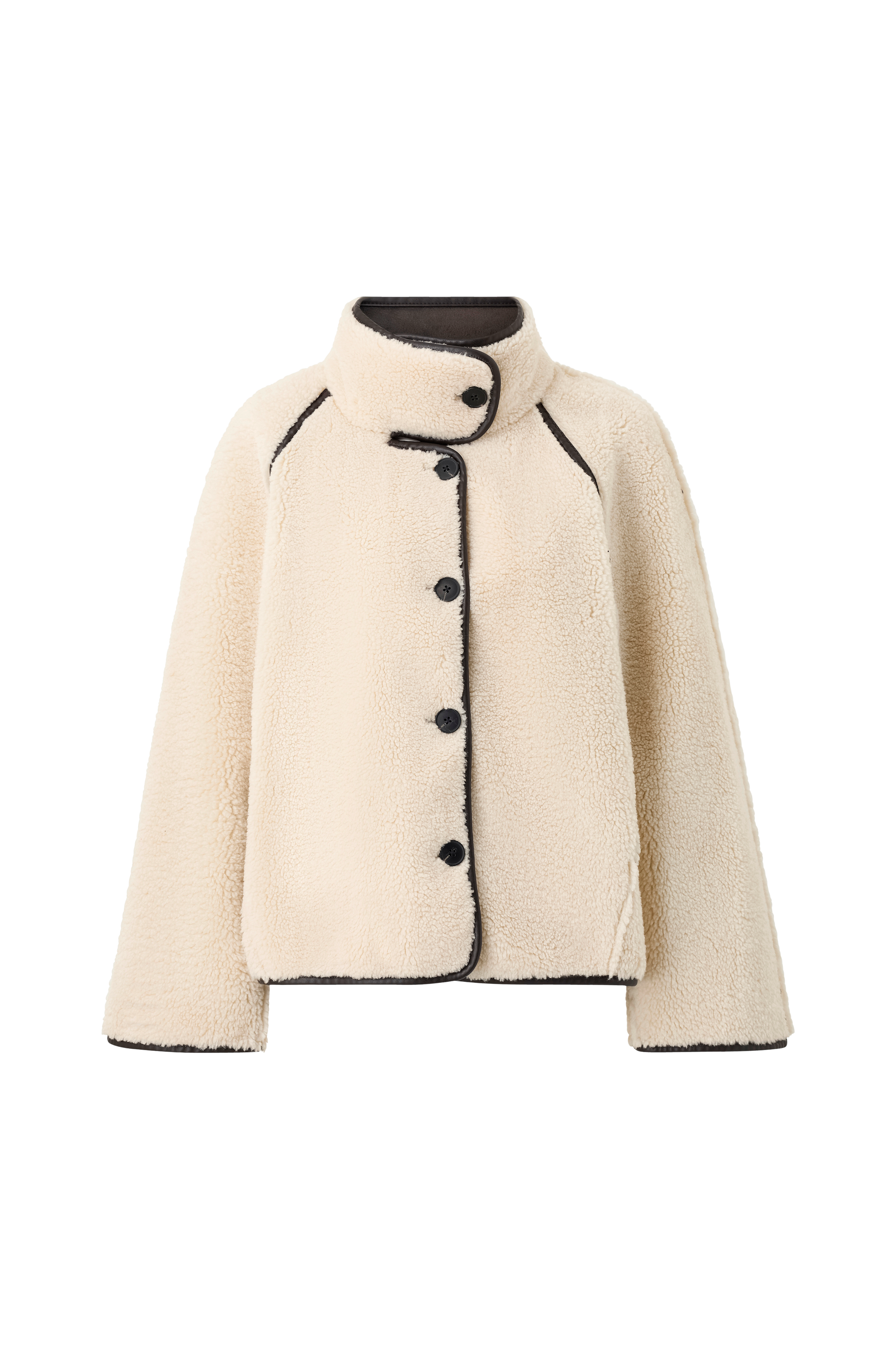 • Vändbar jacka• Skinnimitation på ena sidan• Teddy på andra sidan• Oversize-passform• Knäppbar krage• Stängning med knappar• Två fickor• Längd: 63 cm i storlek 36