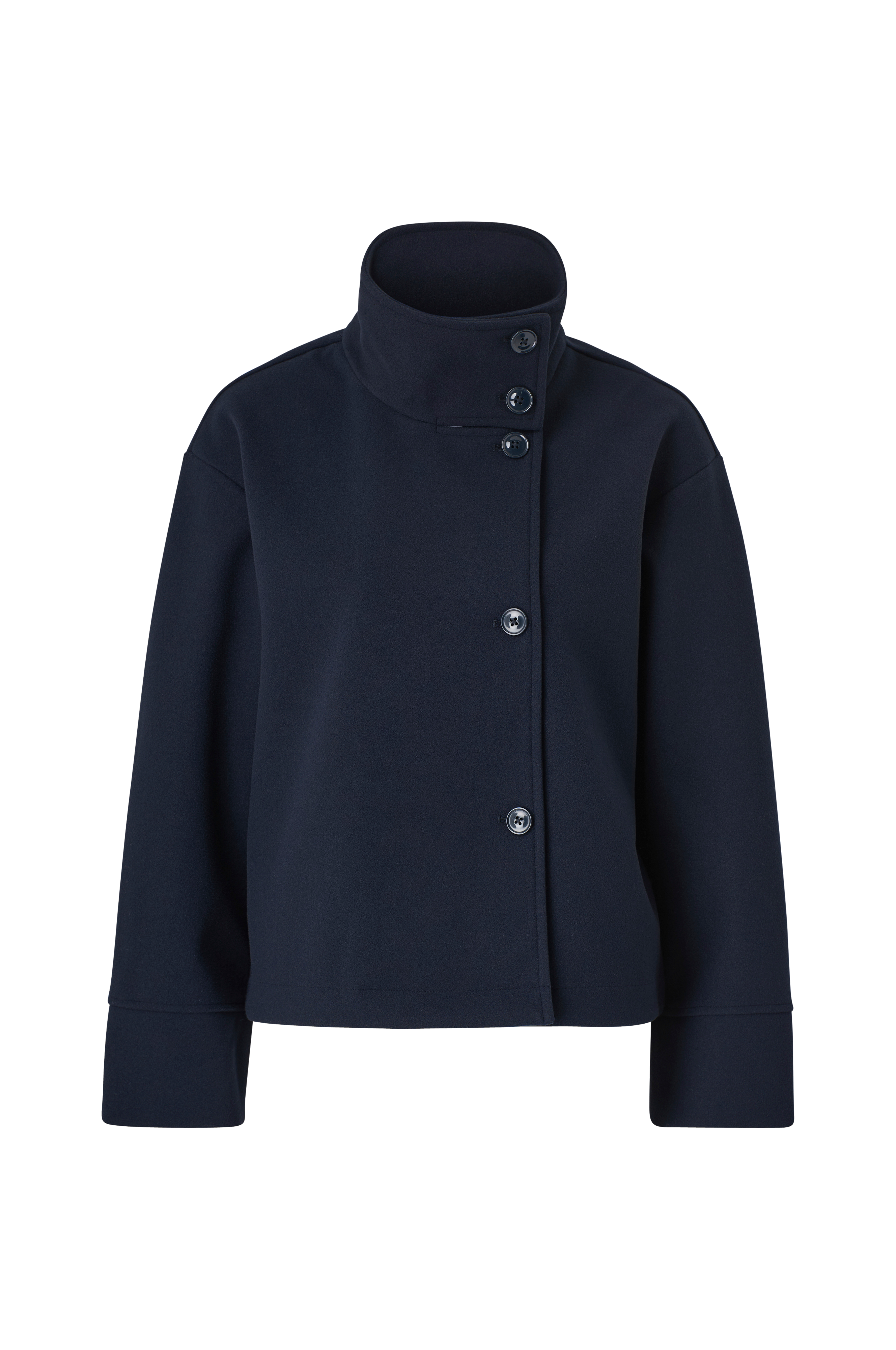 • Vid, rak modell• Knäppning med knappar vid sidan• Hög krage• Rak ärm• Infällda sidfickor• Rak nederkant• Ofodrad• Längd: 61 cm i storlek S