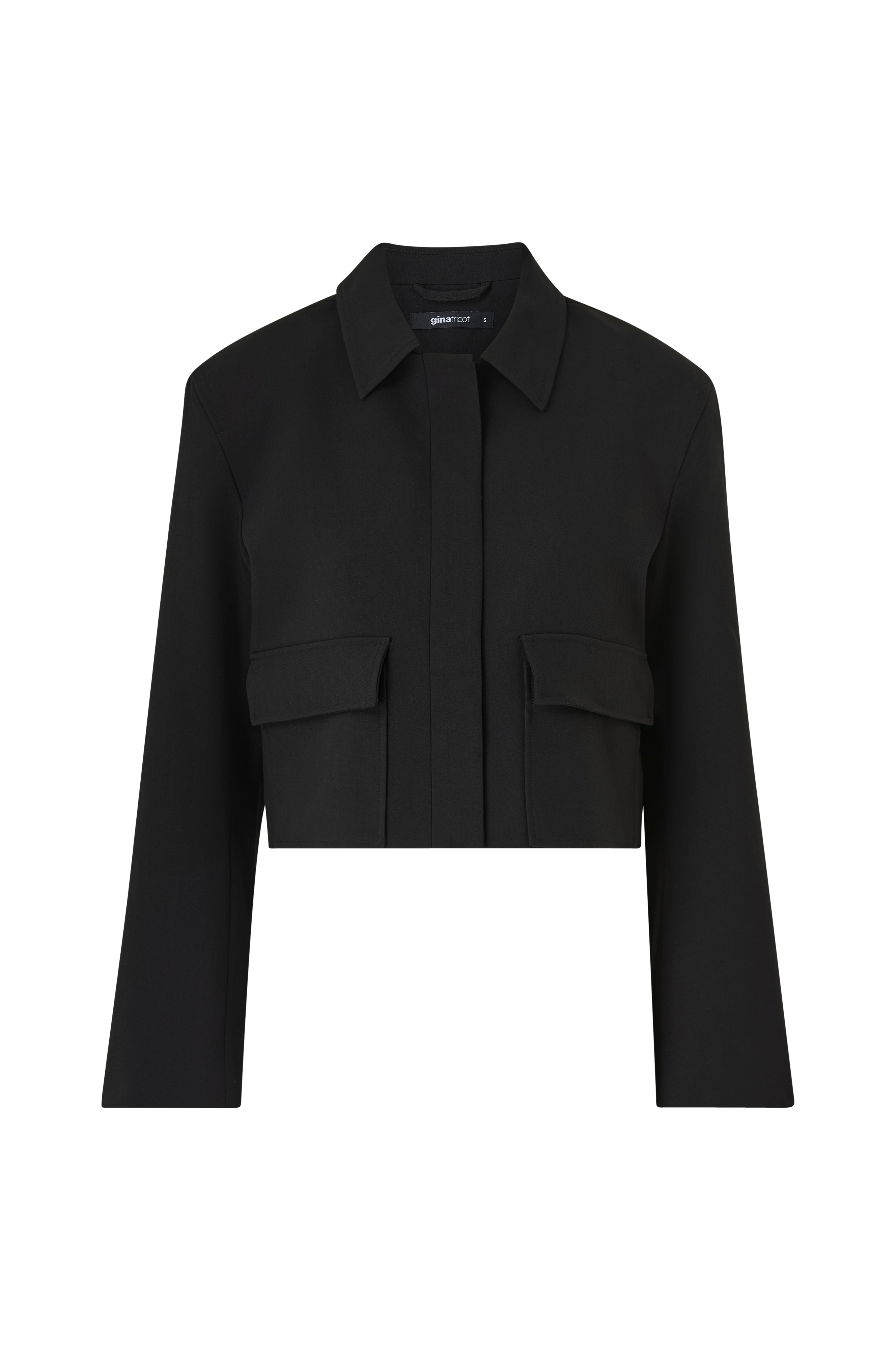 • Kort, vid modell• Dolda tryckknappar hela vägen fram• Stora fickor med lock• Extra lång ärm• Tunna axelvaddar• Fodrad• Längd: 47 cm i storlek S
