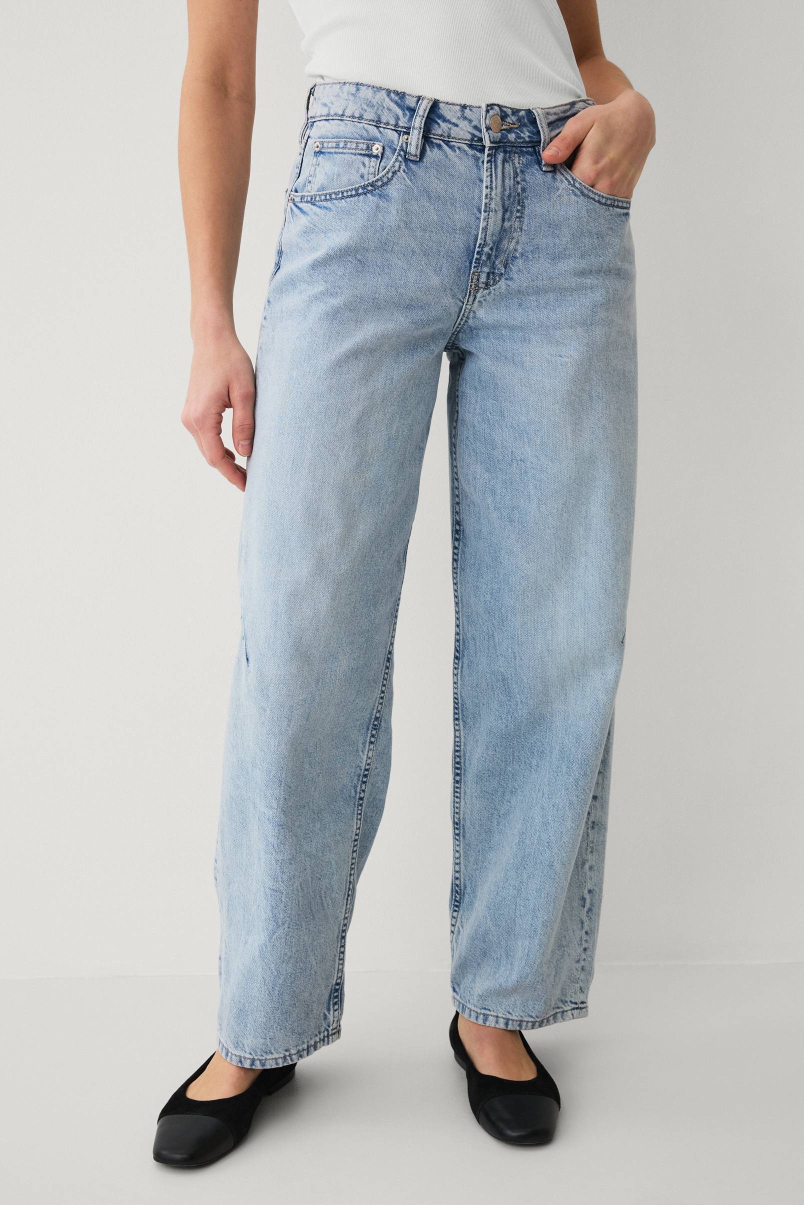 • Jeans med ballongben• Lös passform• Femficksmodell• Dragkedjegylf• Beninnerlängd: 79 cm i storlek 36