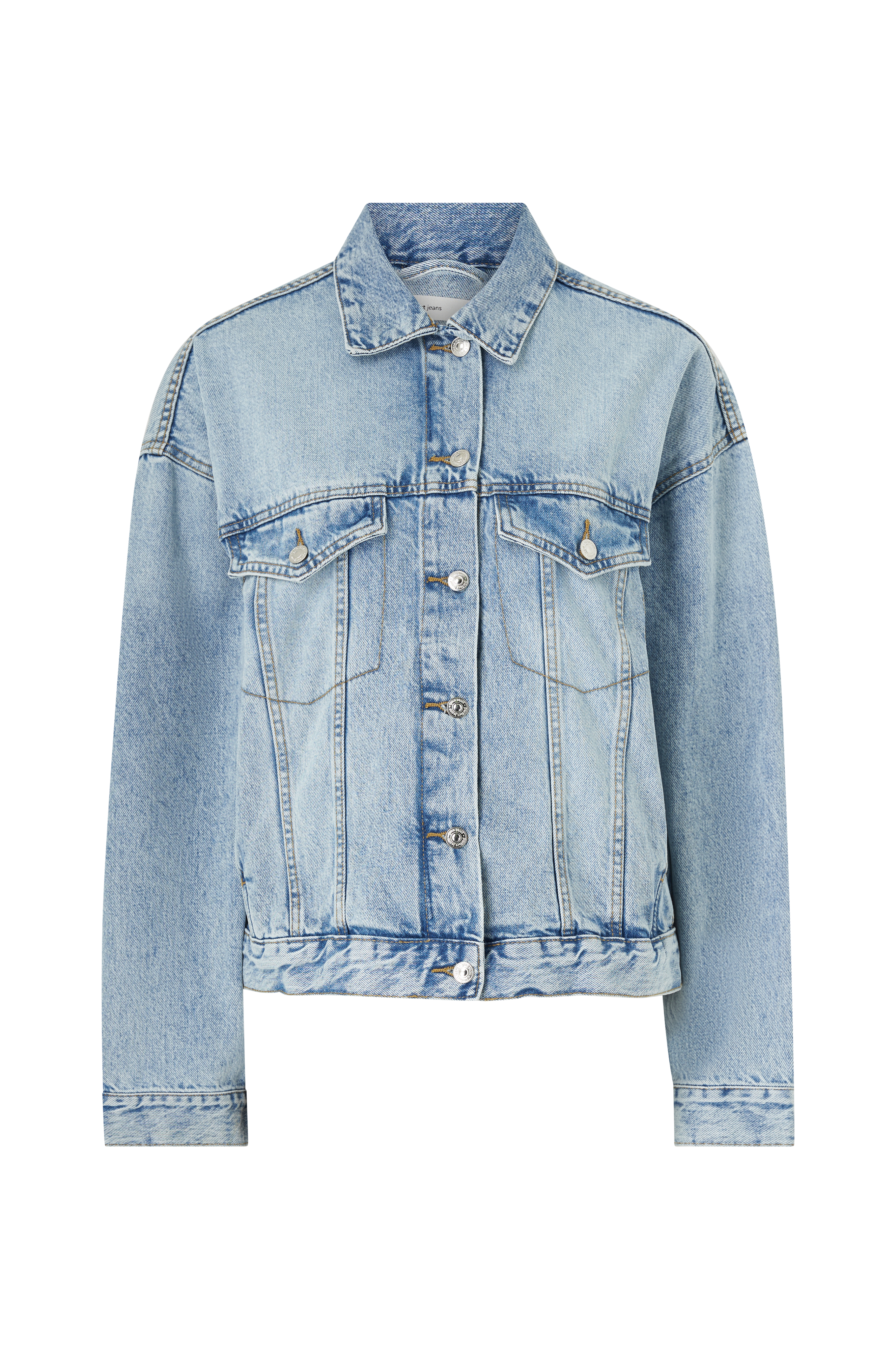 • Jeansjacka med lös passform• Sidfickor• Två bröstfickor med knäppbara ficklock• Knapp i ärmsluten• Knappdetaljer nedtill i sidorna• Längd: 62 cm i storlek S