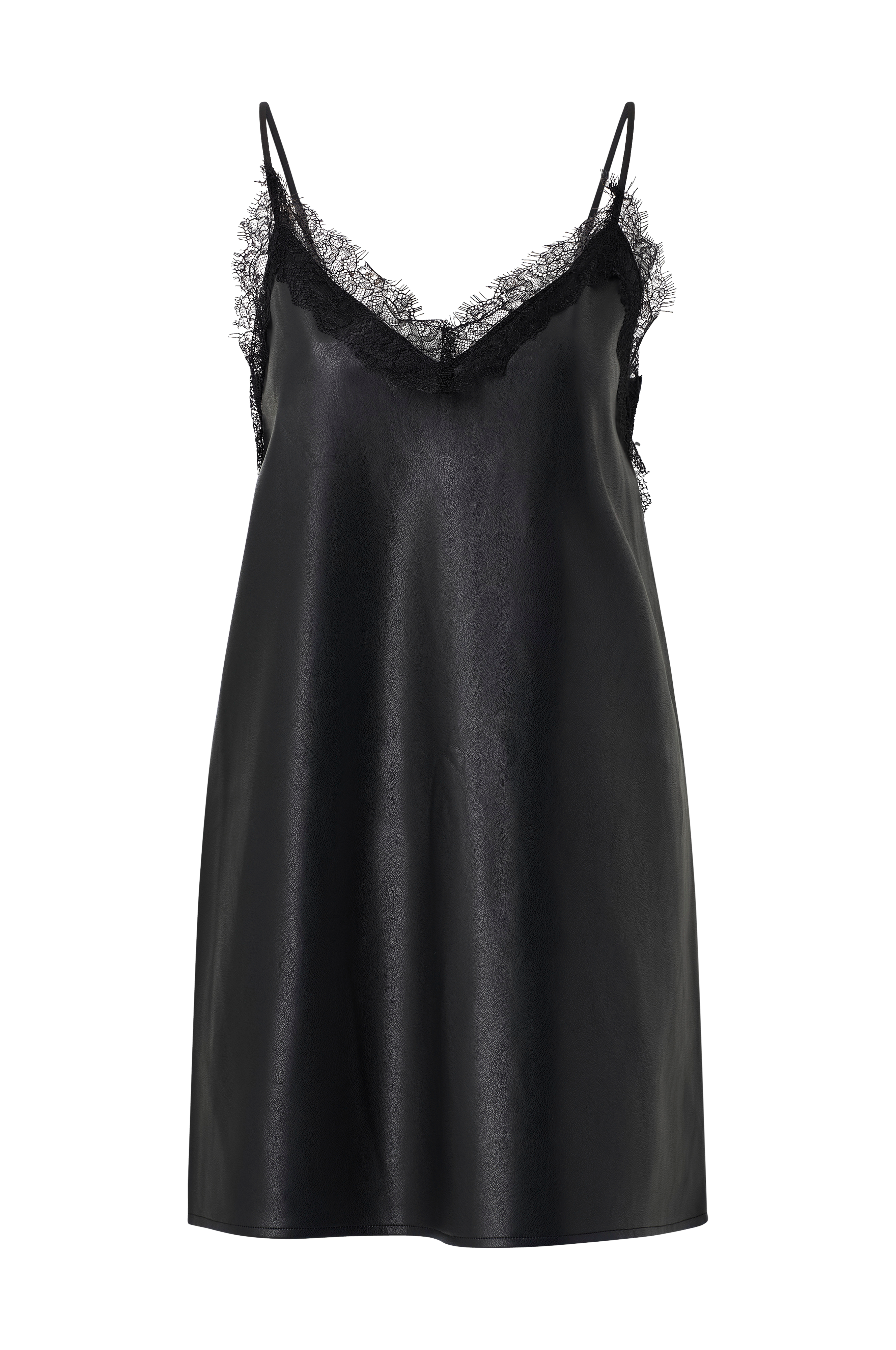 • Ärmlös klänning i skinnimitation