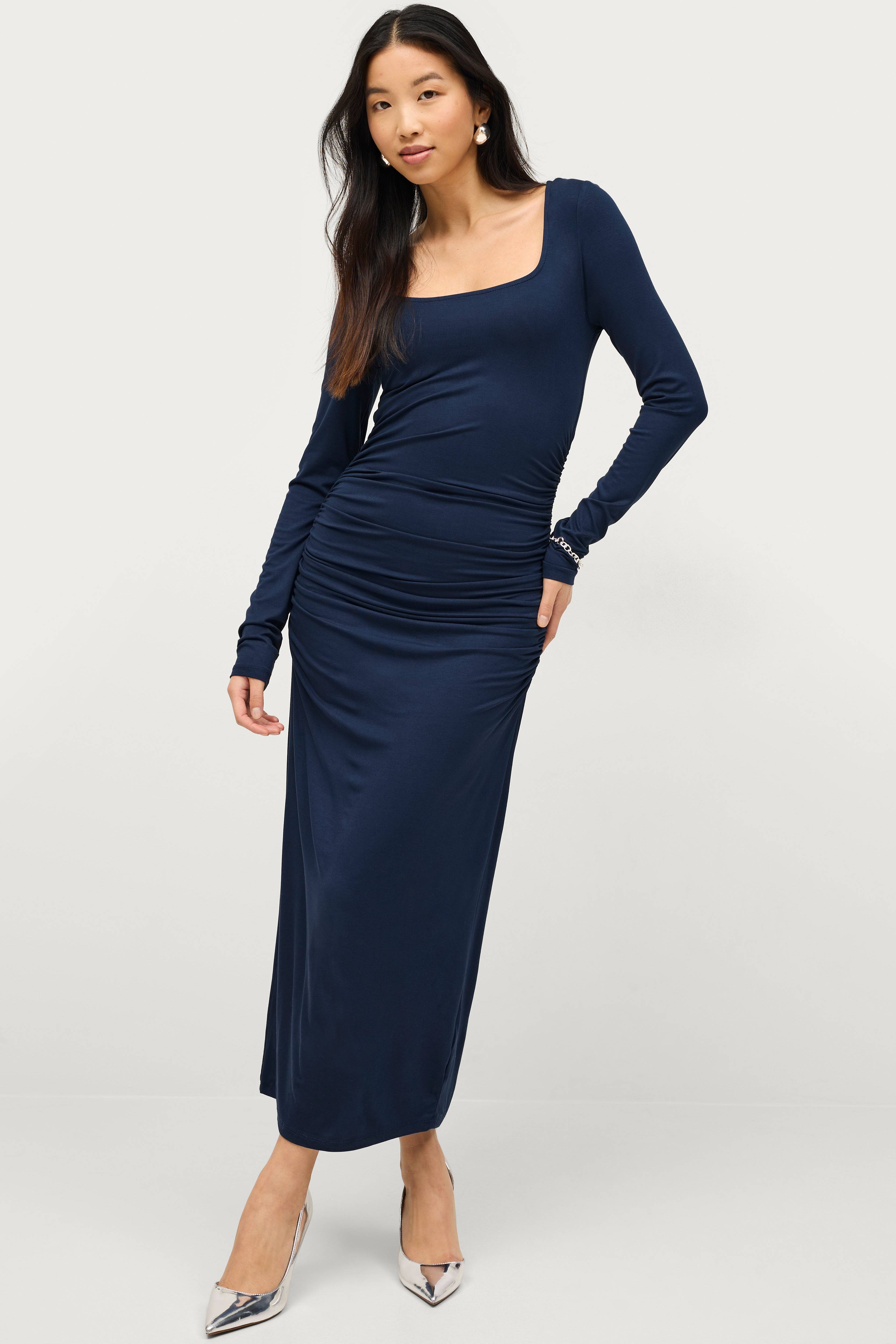• Figurnära klänning i trikå• Drapering i sidorna• Långa ärmar• Längd: 128 cm i storlek S