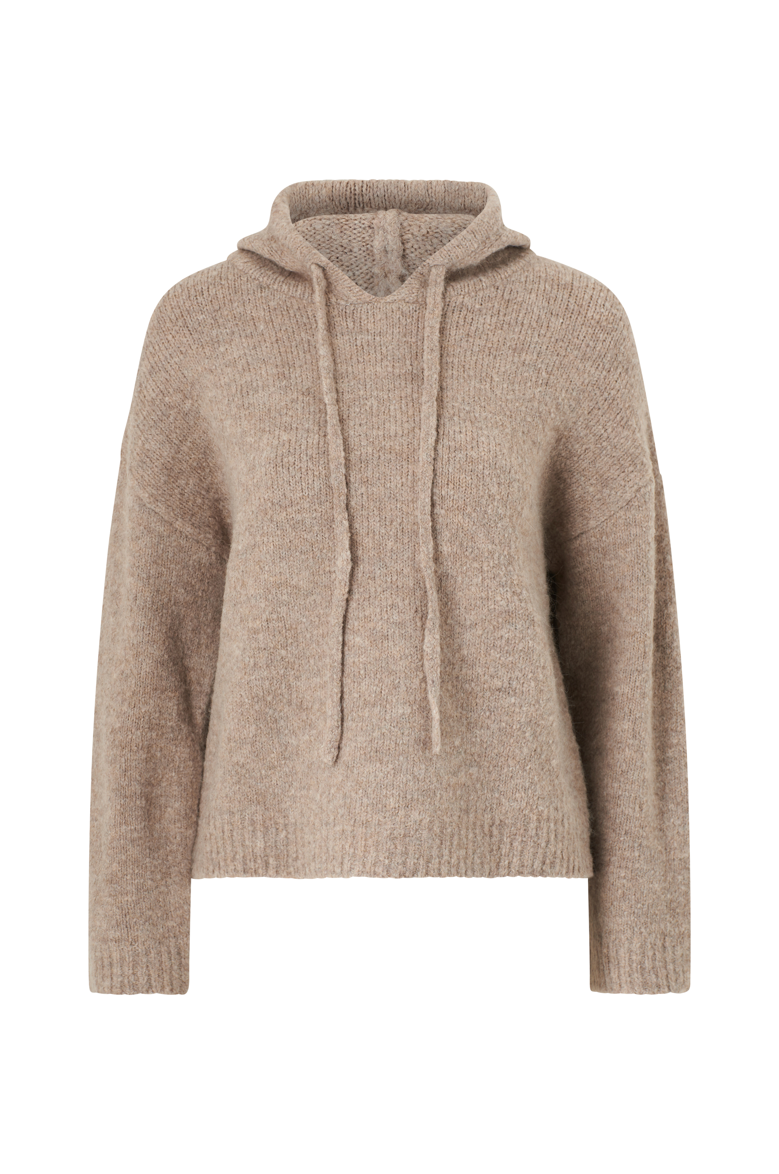 • Finstickad, mjuk huvtröja med dragsko
