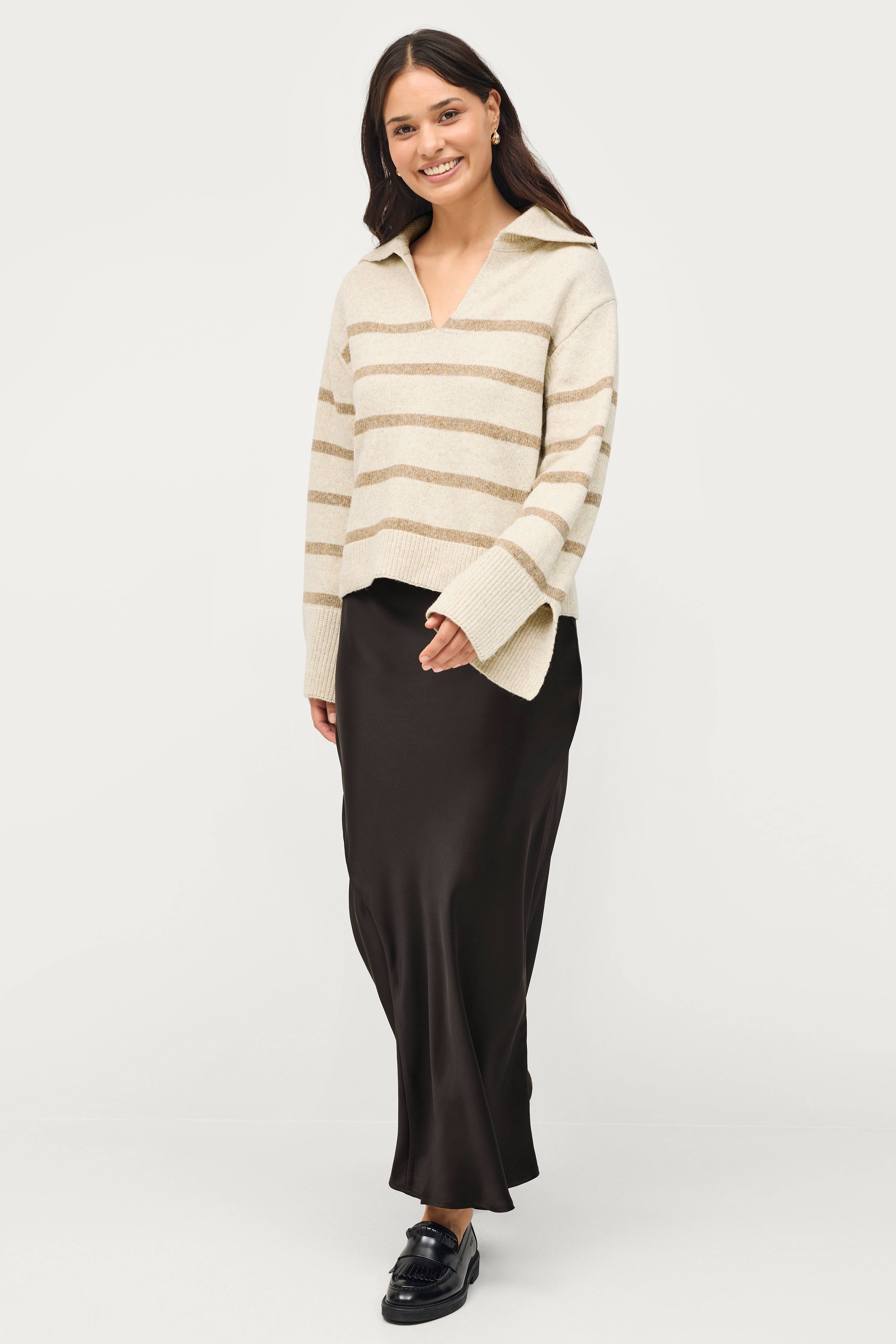 • Lång, utsvängd modell i satin• Invändig resår upptill• Längd: 113 cm i storlek 36