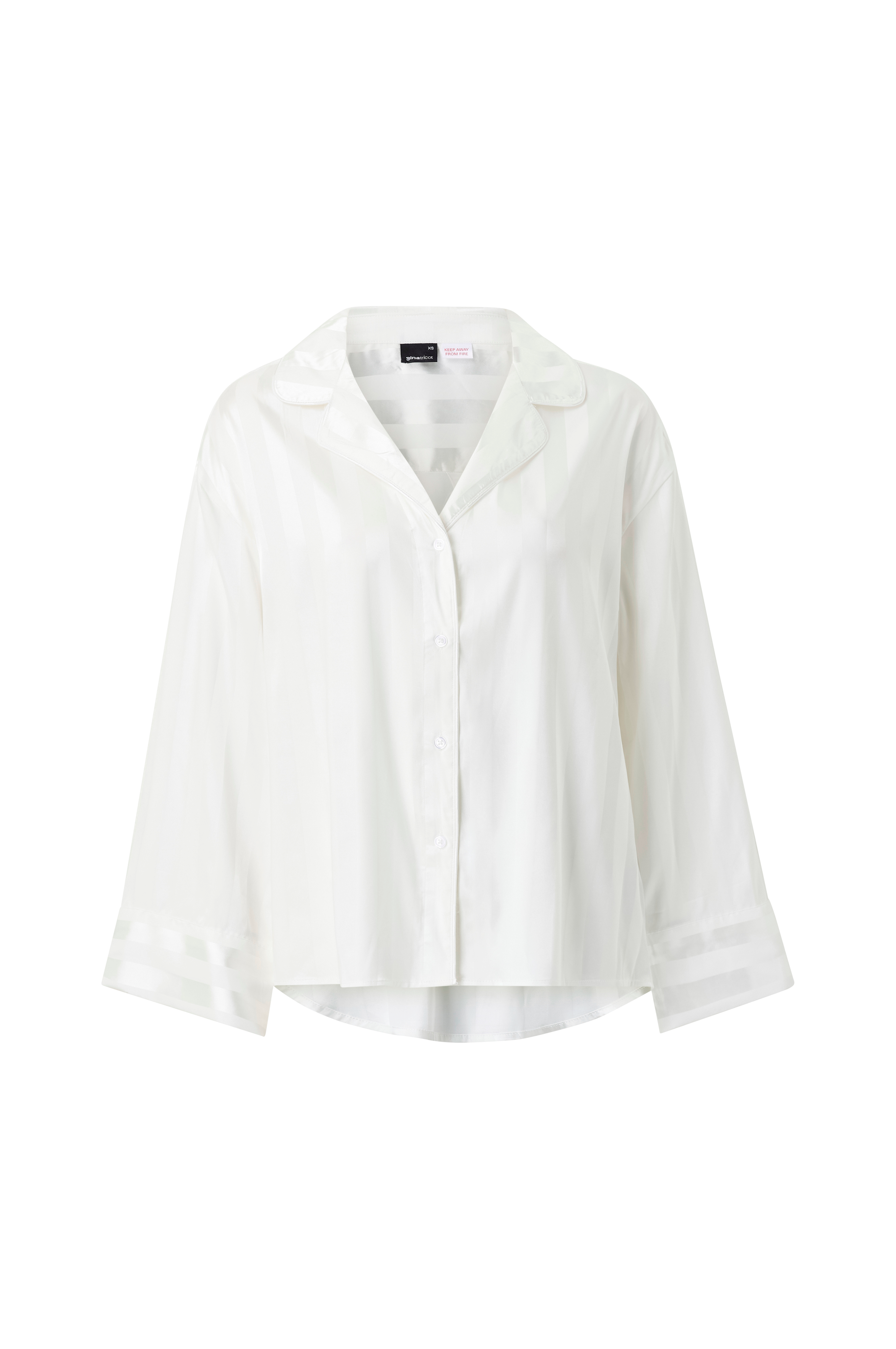 • Tunn, randig pyjamasskjorta i satin• Oversizemodell• Krage med slag• Knäppning fram• Långa, utsvängda ärmar med breda manschetter• Något längre, rundat bakstycke