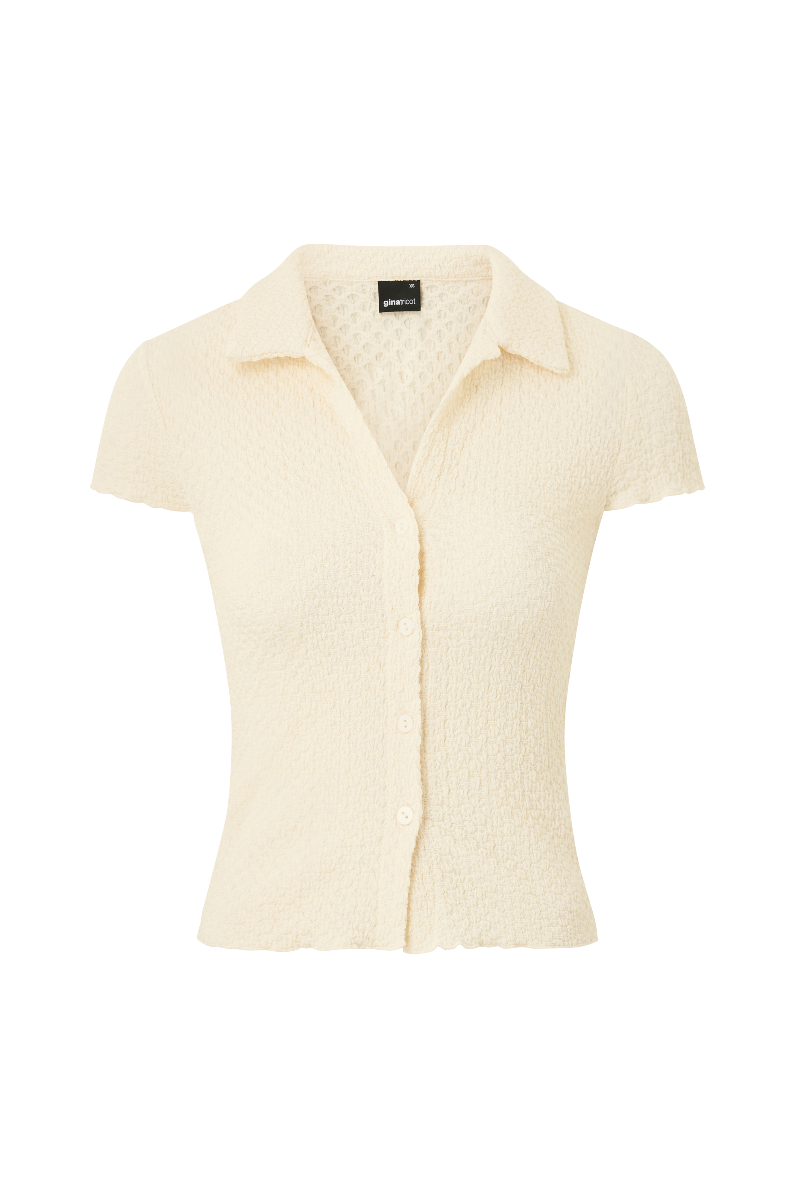 • Figurnära, strukturmönstrad modell• Krage med slag• Knappar fram• Liten holkärm• Vågiga kanter i ärmsluten och nedtill