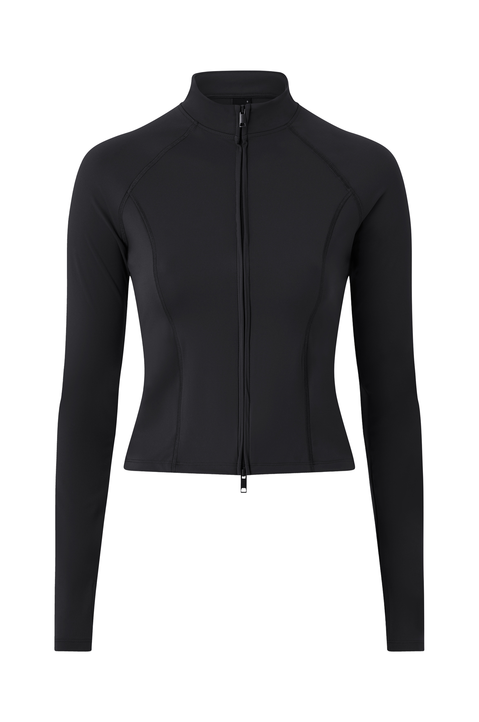 • Långärmad, figurnära träningströja med ståkrage• Tumhål i ärmsluten• Tvåvägsdragkedja