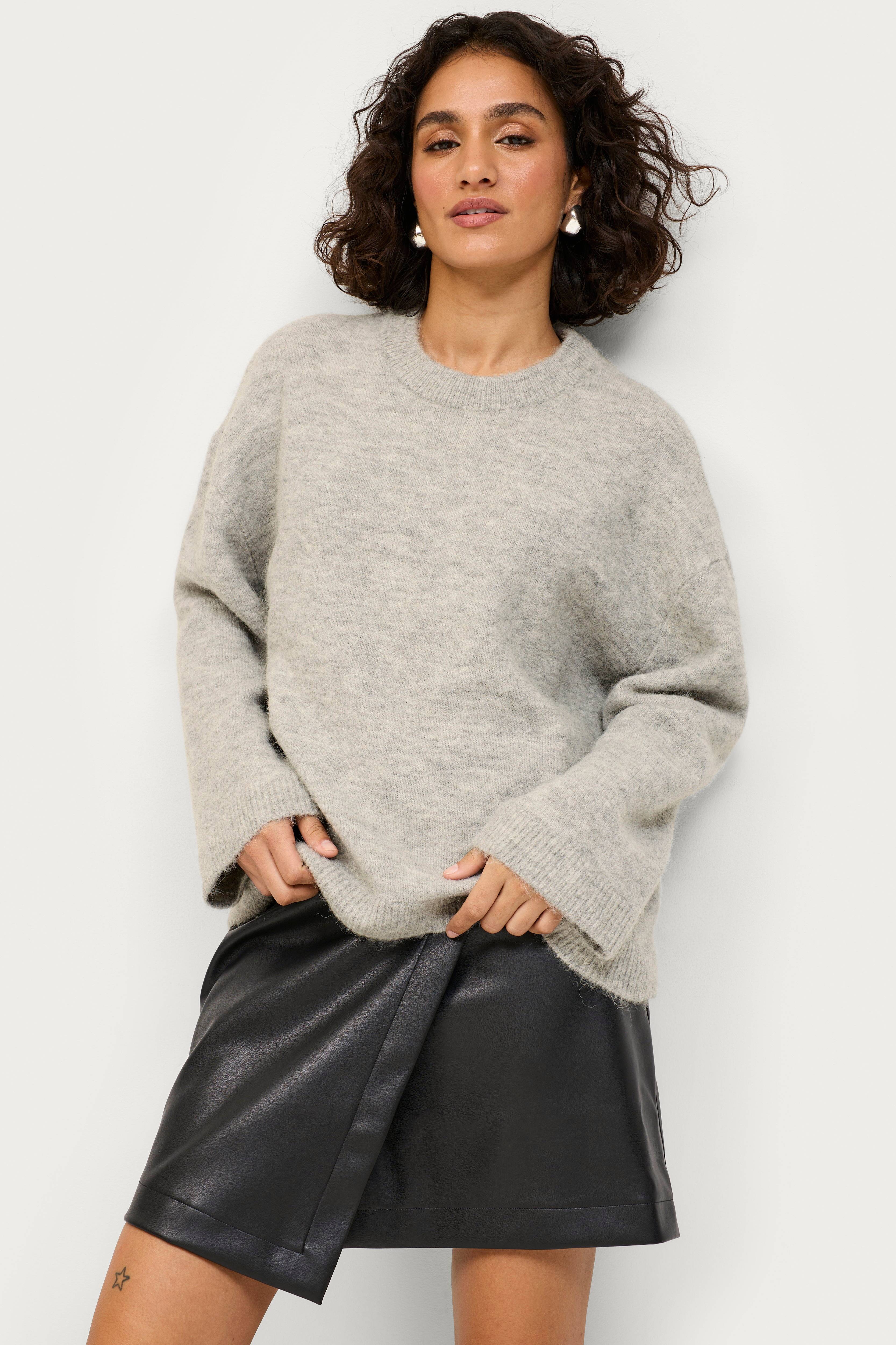 • Stickad tröja i ullmix• Ribbstickad halsringning• Vida ärmar• Lös passform