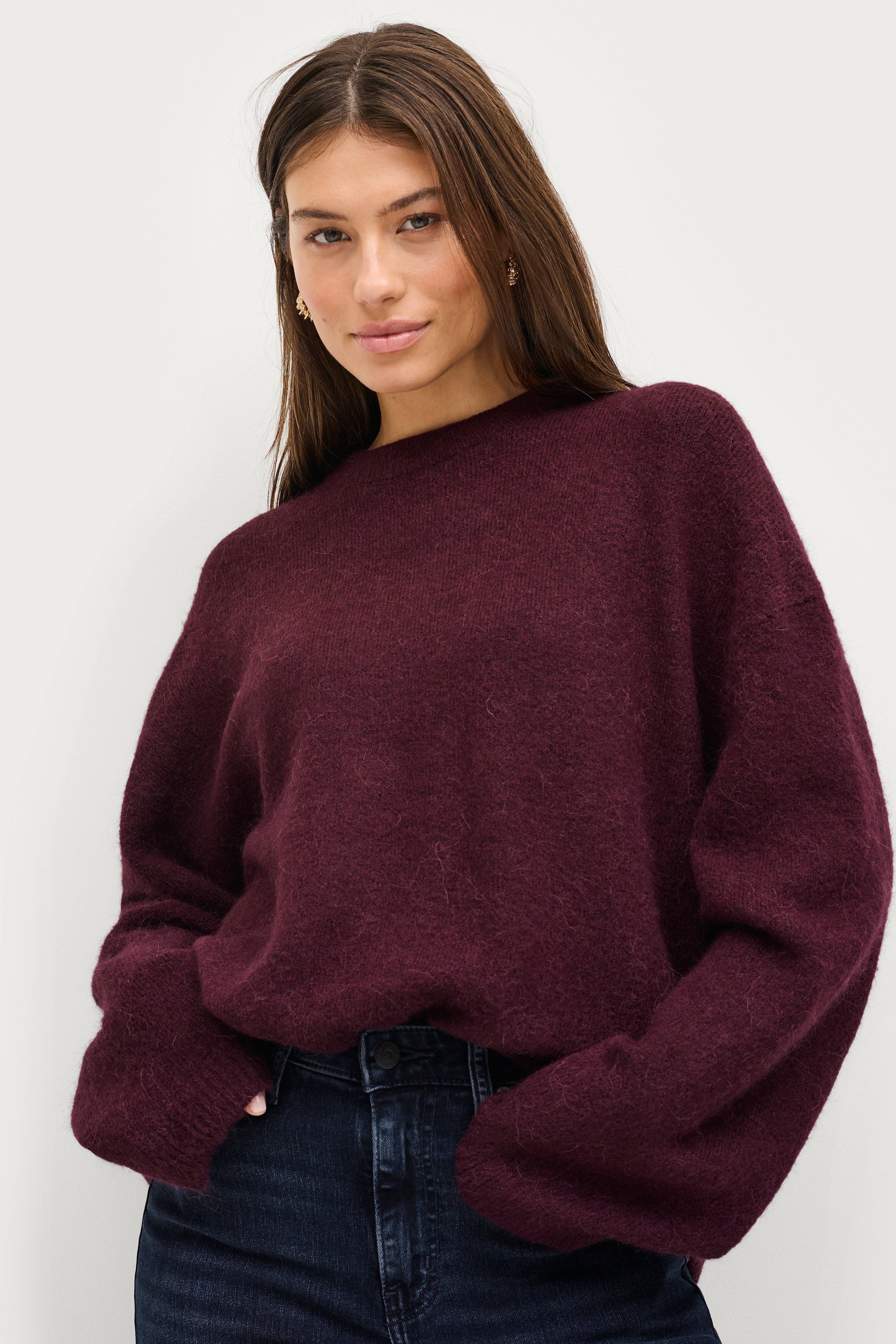 • Stickad tröja i ullmix• Ribbstickad halsringning• Vida ärmar• Lös passform