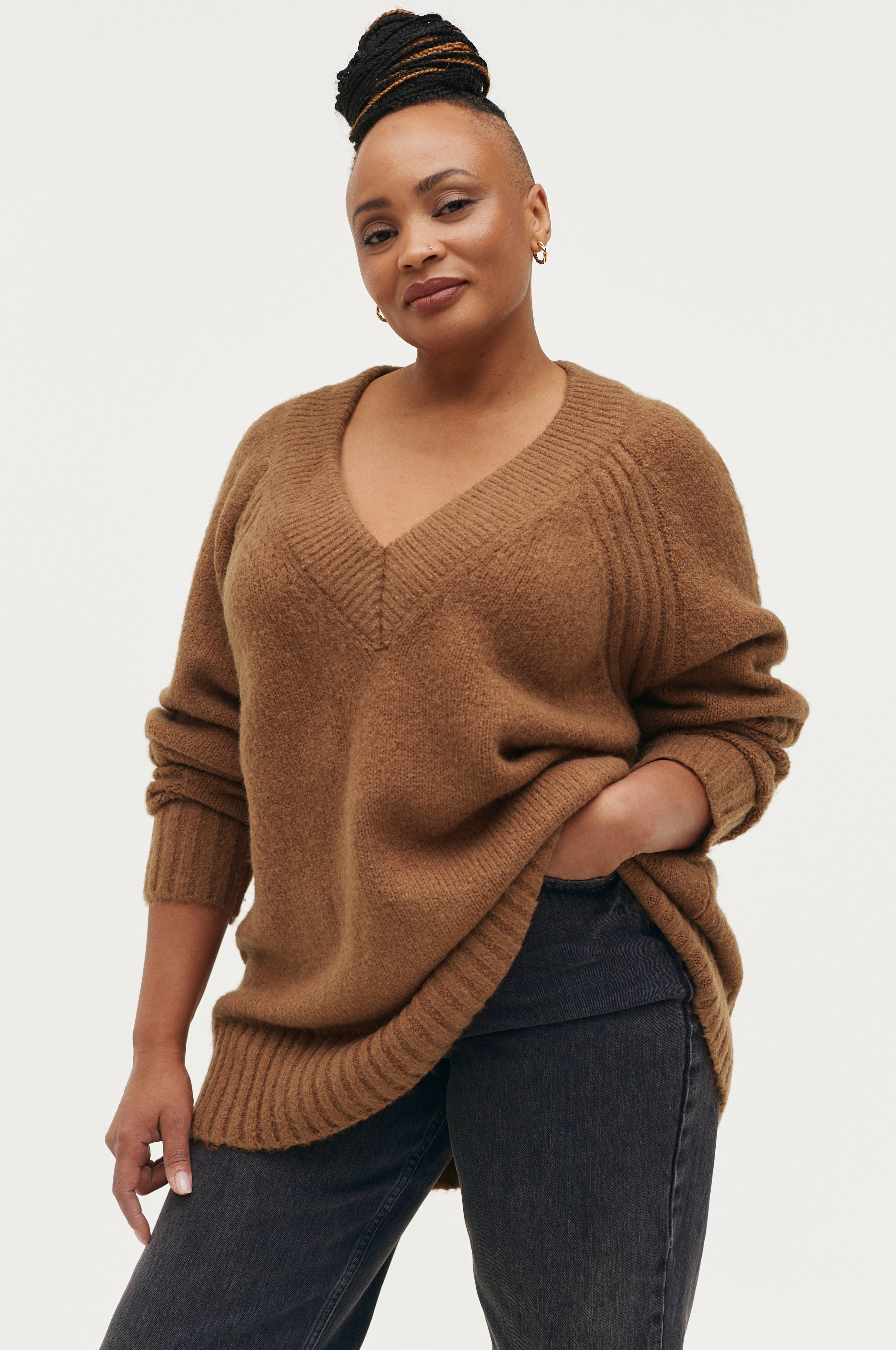 • V-ringad hals med ribbad kant