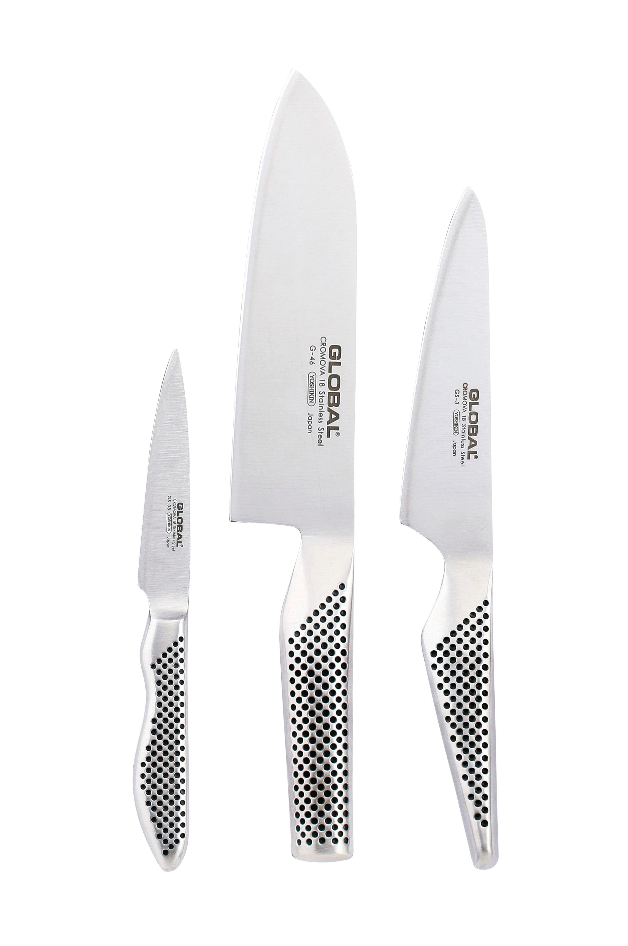 Ett vasst knivset som består av santokukniven G-46, kockkniven GS-3 och skalkniven GS-38. Santoku är en japansk knivmodell som har många likheter med en klassisk kockkniv. Du kan använda kniven till att skära, hacka och tärna de allra flesta råvaror. När du tycker att santokukniven känns för stor är den lilla kockkniven ett bra val. Du kan bland annat använda kniven till att hacka lök, chili, örter eller mindre rotfrukter och frukter. Skalkniven är bäst lämpad för arbeten som kräver precision, till exempel att skala frukt och grönt.