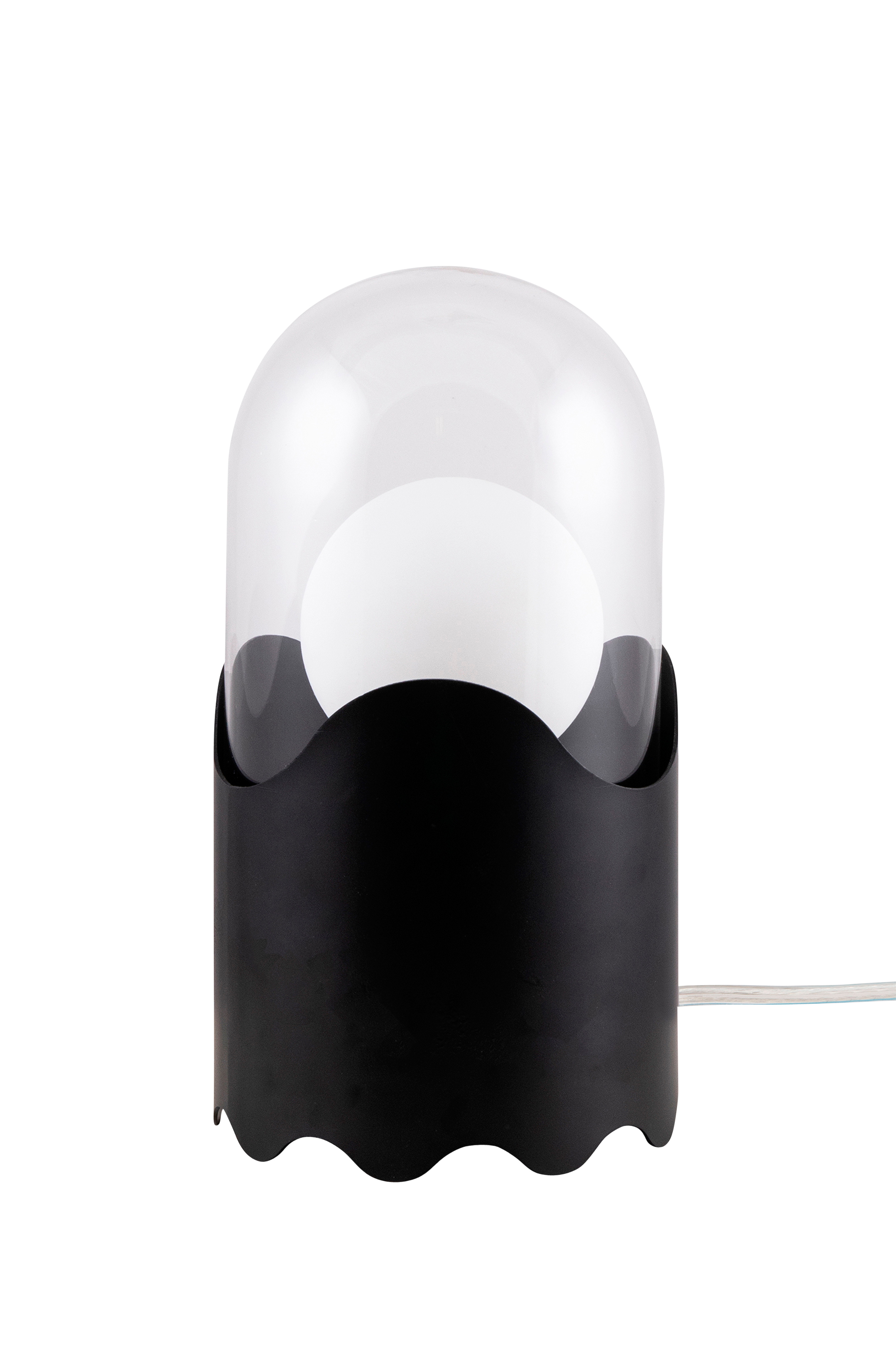 En liten, lättplacerad bordslampa som i sin form påminner om ett spöke. Lampans bas är gjord i lackad metall. Ovanpå metallställningen ligger en klar glaskupa. Lampan har en 200 cm lång transparent kabel med brytare. Bredd: 14, Djup: 14, Höjd: 26 (cm) Lamphållare: 1xE27 Max 6W Rek. Ljuskälla: E112 (Medföljer ej)