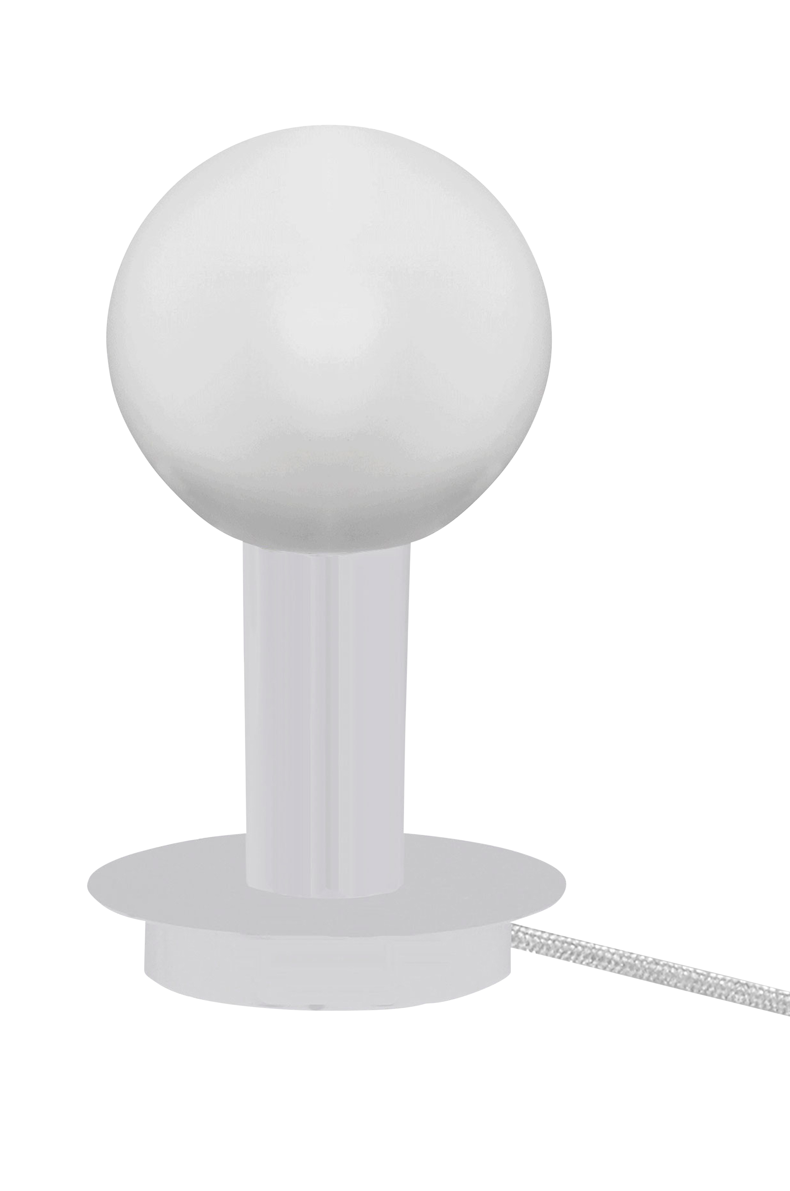 Bordsfot Torch, som finns i tre färger: Svartlackerad metall, vitlackerad metall och kromad metall. 190 cm svart textilkabel med brytare. Ljuskälla ingår ej. Höjd exkl. ljuskälla 12 cm och diameter 11 cm. Lamphållare E27. Max 60W. Design Patrik Hall.