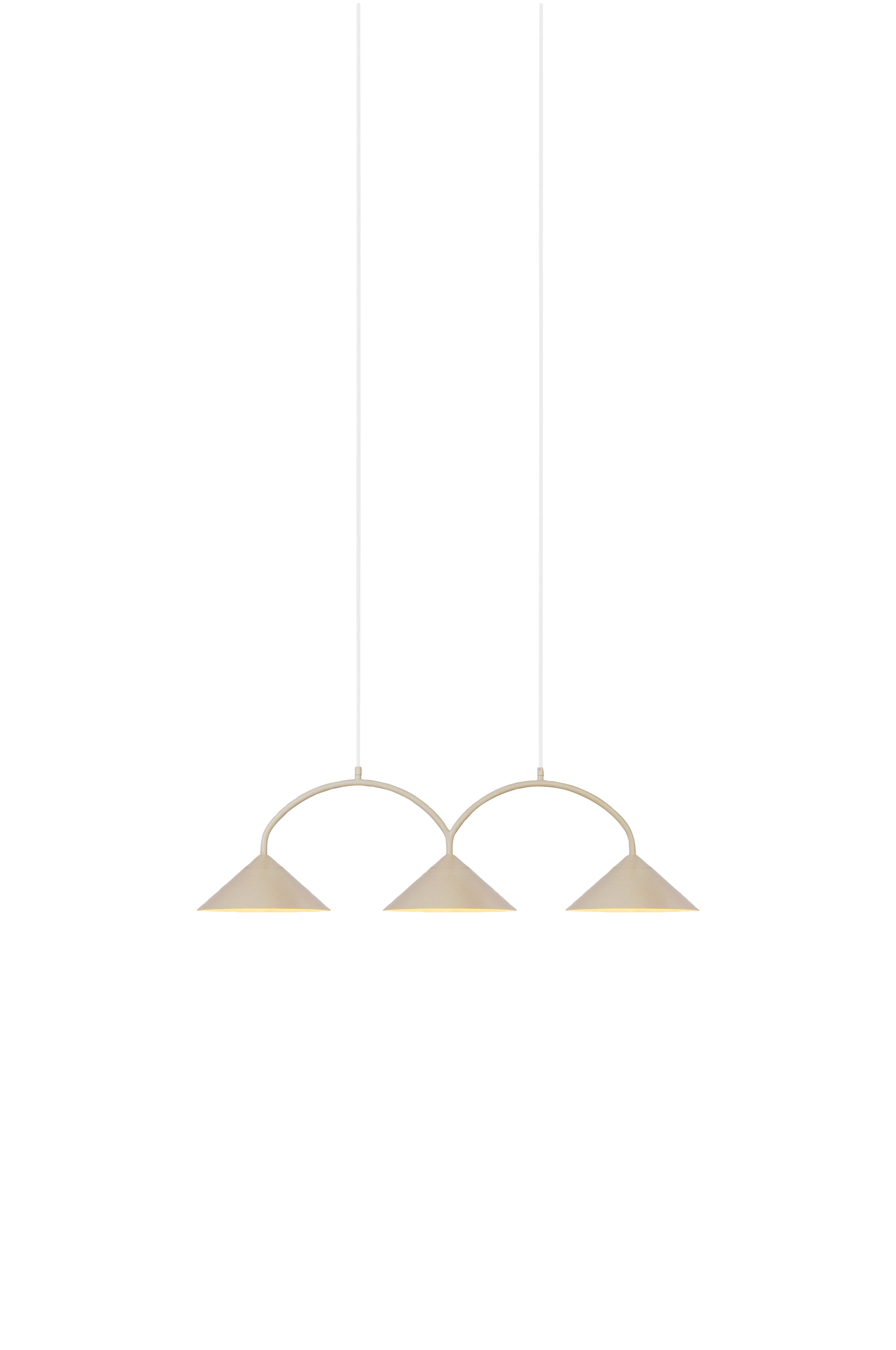 Curve kombinerar mjuka bågar med skarpa triangulära linjer i ett grafiskt formspråk. Pendeln är tillverkad av mattlackerad metall med tre nyanser och levereras med två 200 cm textilkablar och en matchande takkopp. Passar lika bra över matsalsbordet som över köksön. Lampan är kompatibel med dimmer. Takanslutning ingår ej. Ljuskälla ingår ej.