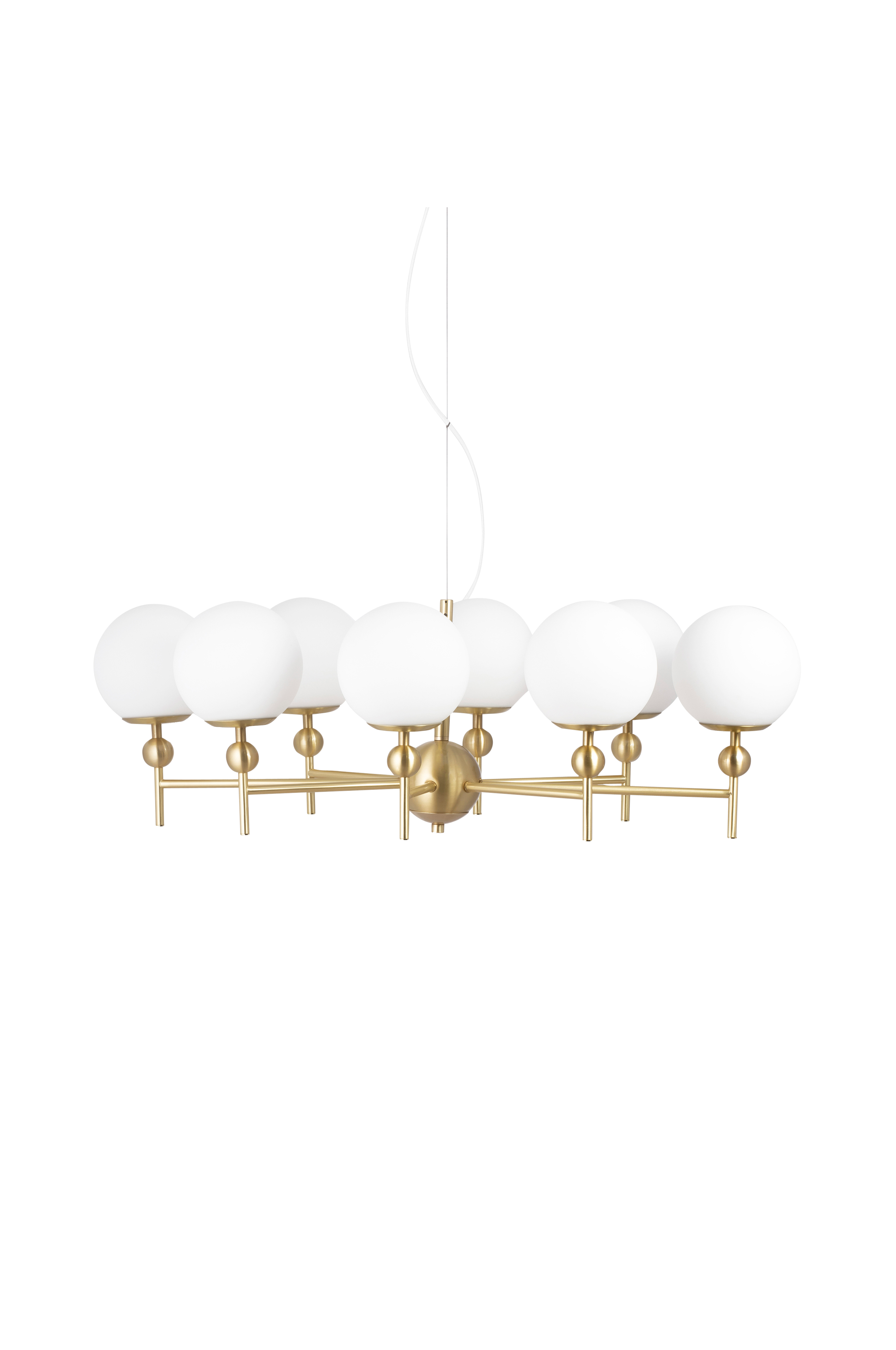 Astrid är en klassisk pendel med matt glas och borstad metall. Denna lampa tar för sig och gör sig fin ovanför t.ex. det avlånga matbordet. Lampan har en 120 cm lång textilkabel med vajer, samt takkopp i borstad metall. Design: GL Design Studio. Bredd 85 cm, djup 50 cm och höjd 28 cm. Lamphållare: 8xE14 Max 40W. Ljuskälla medföljer ej. Ojordad.