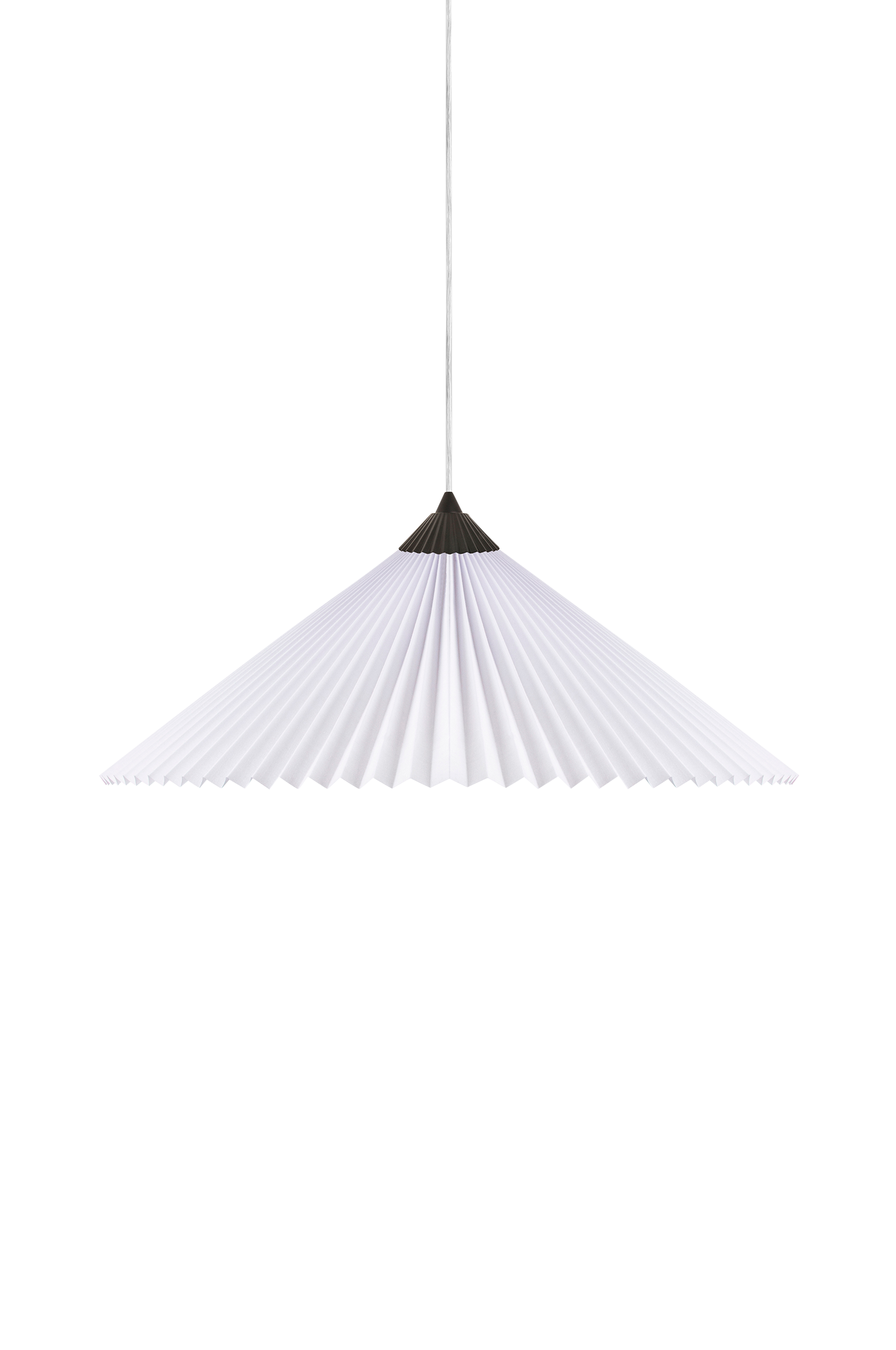 Med sitt strikt grafiska uttryck blir taklampan Matisse den perfekta detaljen i det moderna hemmet. Lampan har en veckad textilskärm och är dekorerad med en matchande veckad topp i lackad metall. Lampan har en 120 cm lång transparent kabel och takkopp i plast. Design, Patrick Hall. Diameter 60 cm och höjd 30 cm. Lamphållare 1xE27. Max 60W. Ljuskälla medföljer ej. Ojordad kronkoppling säljs separat. Krokupphängning.