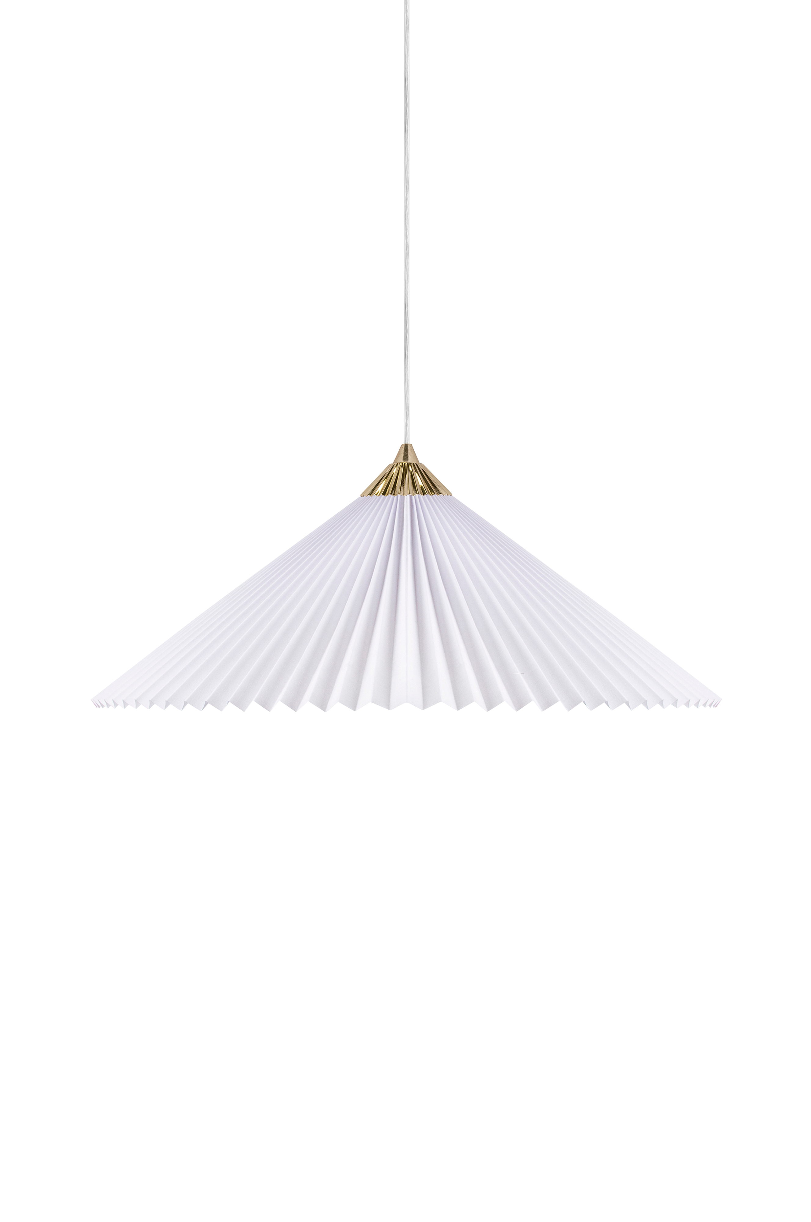 Med sitt strikt grafiska uttryck blir taklampan Matisse den perfekta detaljen i det moderna hemmet. Lampan har en veckad textilskärm och är dekorerad med en matchande veckad topp i lackad metall. Lampan har en 120 cm lång transparent kabel och takkopp i plast. Design, Patrick Hall. Diameter 60 cm och höjd 30 cm. Lamphållare 1xE27. Max 60W. Ljuskälla medföljer ej. Ojordad kronkoppling säljs separat. Krokupphängning.